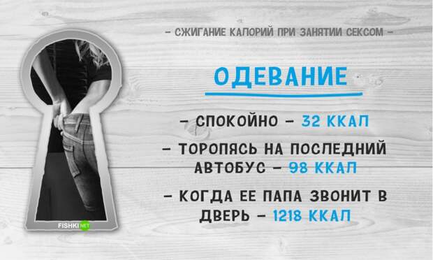 Интересный факт! Секс в одежде позволяет ускорить процесс похудения — 250 ккал.