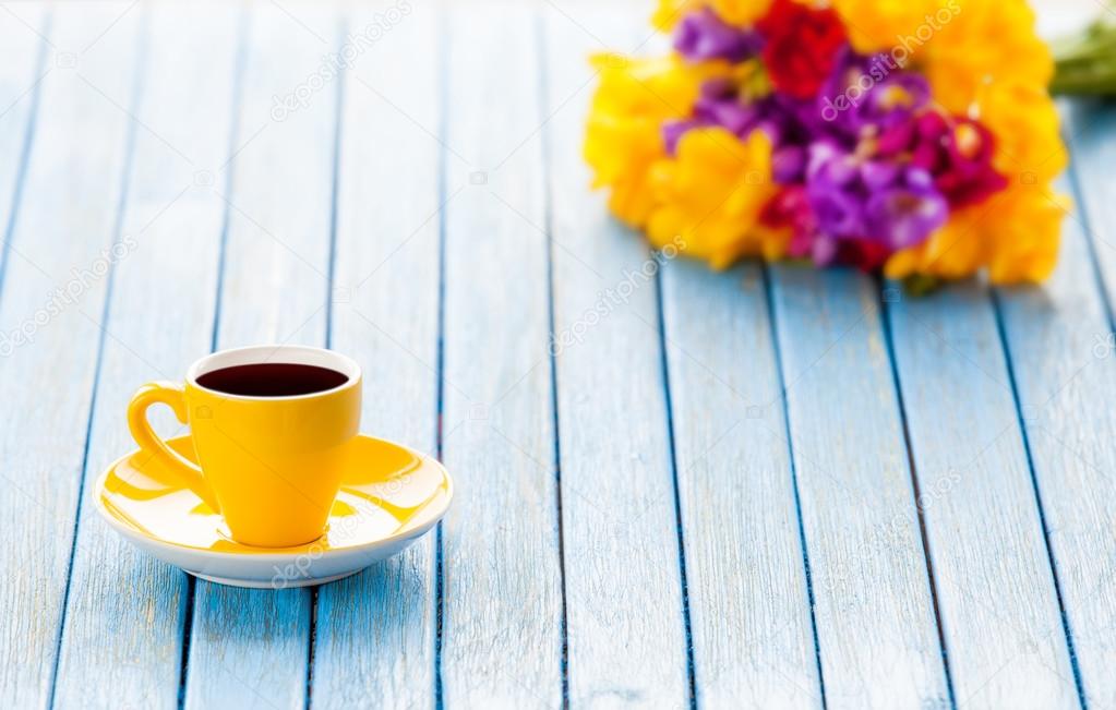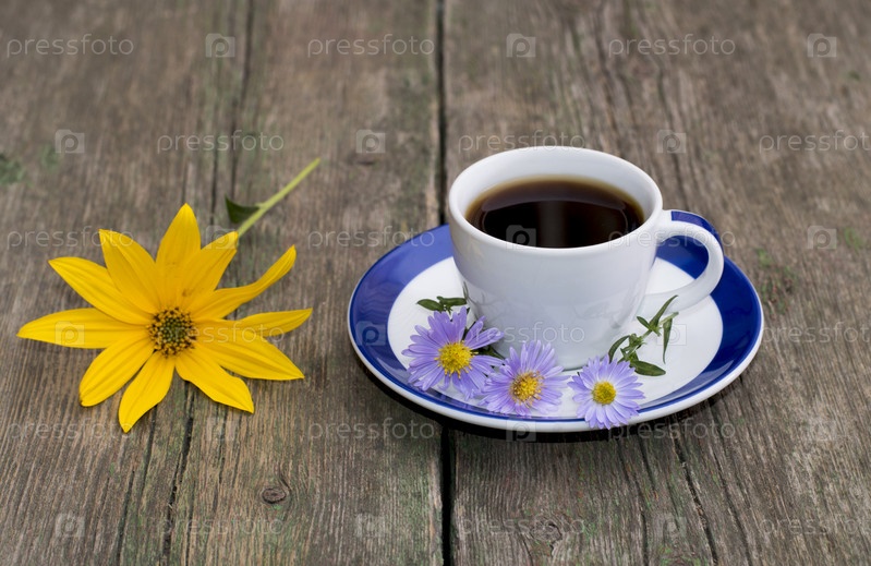 Чашечка кофе и цветы