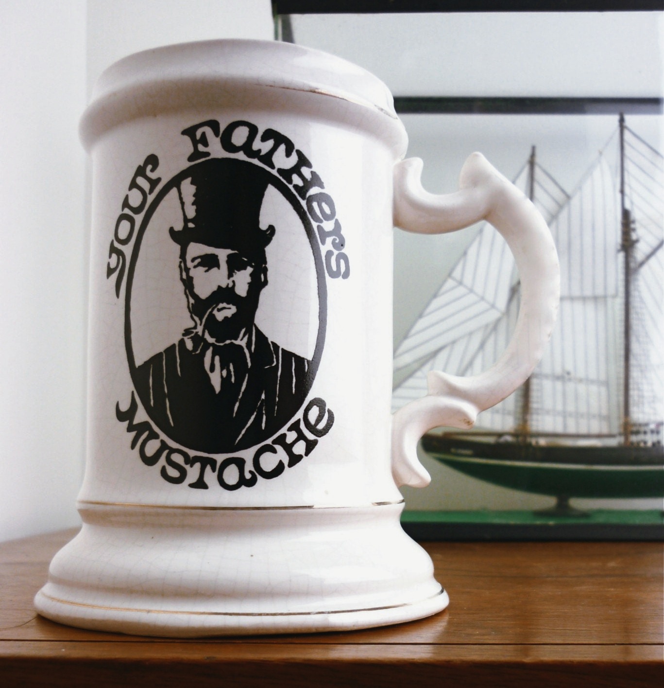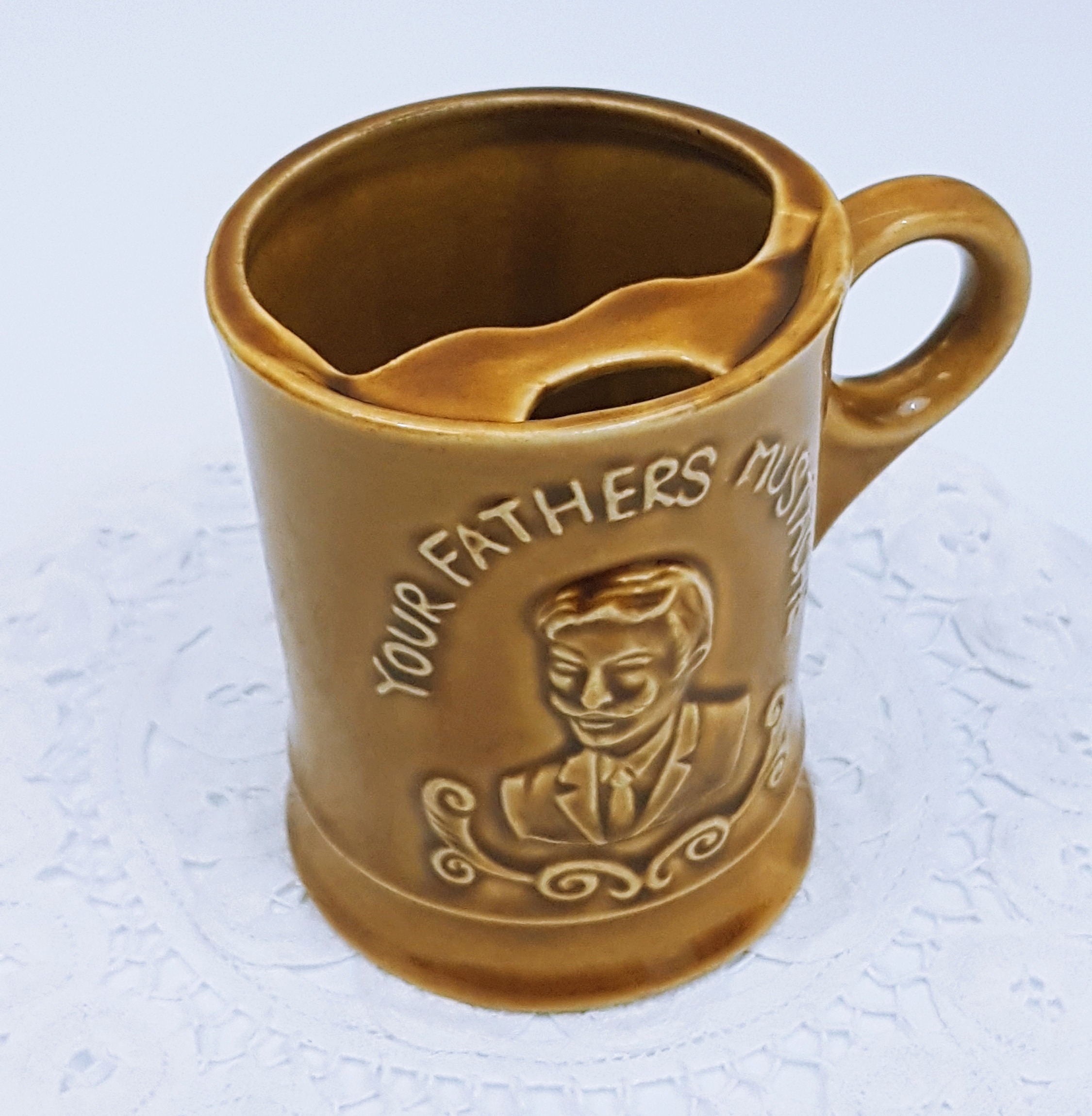И как раз этот самый воск создавал проблему для мужчин с усами, потому что любая чашка горячего чая или кофе растапливала воск и он капал прямо в чашку, оставляя усы висящими, а напиток был испорчен. Решением этой проблемы стало изобретение чашки с усами Харви Адамсом в 1830 году в гончарной мастерской в Лонгтоне, Сток-он-Трент, Англия.