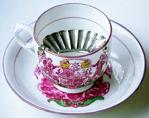В конце 19 века девизы или выражения на усовых чашках, написанные эмалью, золотом или рельефно, стали модой. Некоторые надписи звучали так «Помни меня», «Люби дарителя», «Не забывай меня», «Подарок» или «Поздравляю с днём рождения». На других были написаны слова «Отец» или «Папа».