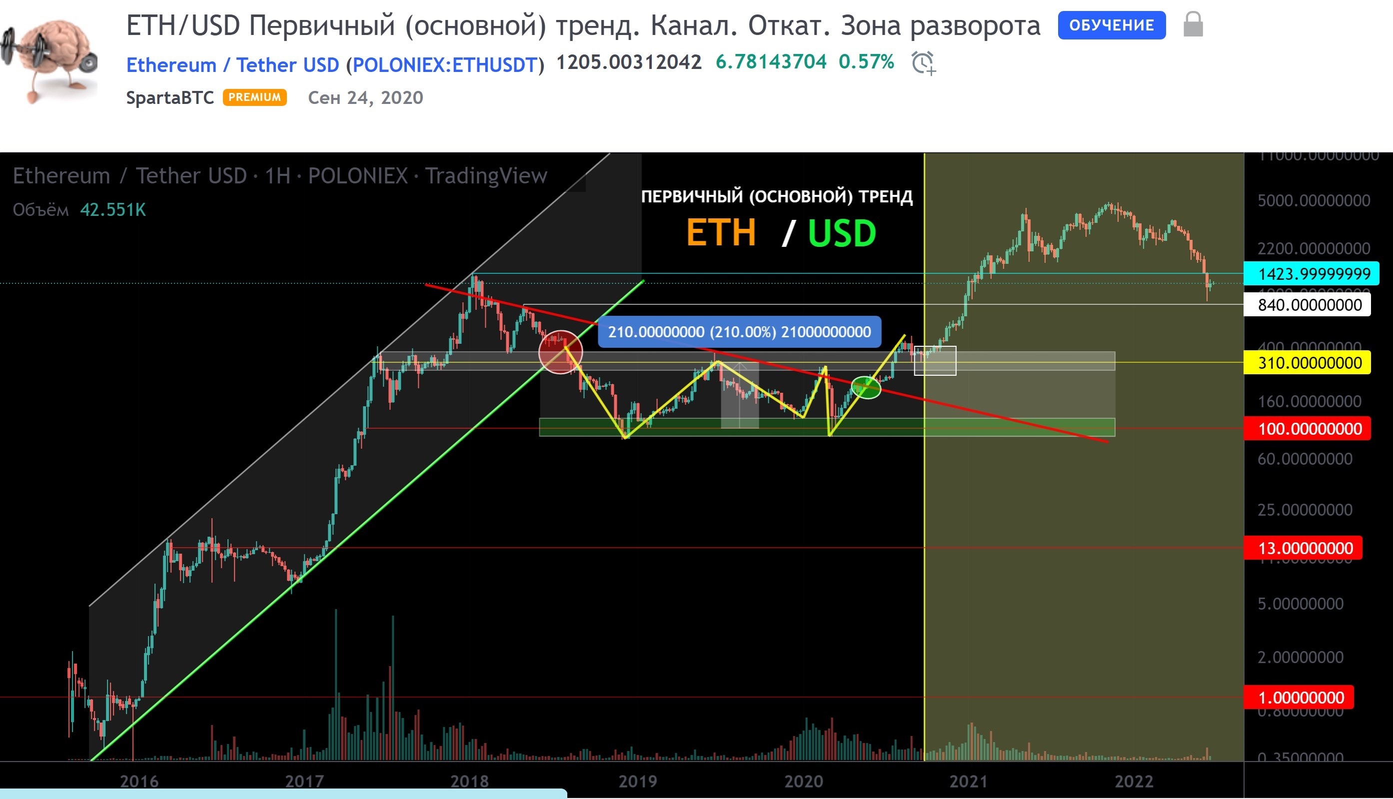 8) ETH/USD Первичный (основной) тренд. Канал. Откат. Зона разворот