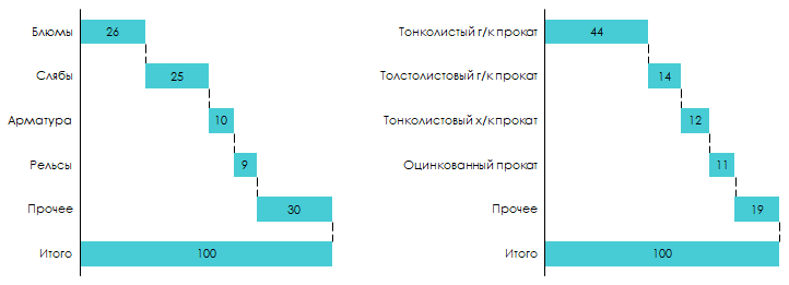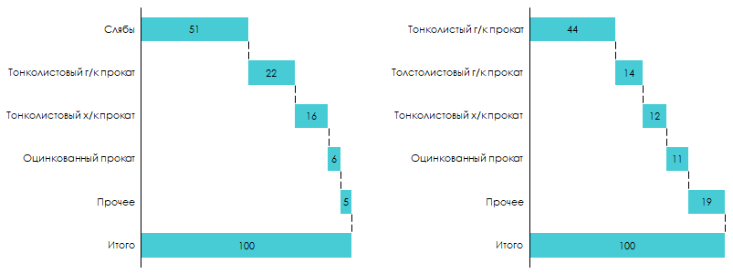 В то время как предприятия Евраза специализируются на сортовом прокате и стальных заготовках.