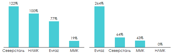 Третья – небольшой Free Float российских компаний. Зарубежные акционеры не любят (и это нормально), когда в компании сидит один большой мажоритарий. Например, 84% НЛМК принадлежит Лисину, 77% Северстали – Мордашову, 84% ММК – Рашникову, 59,5% Евраза поделены между Абрамовичем, Абрамовым и Фроловым.