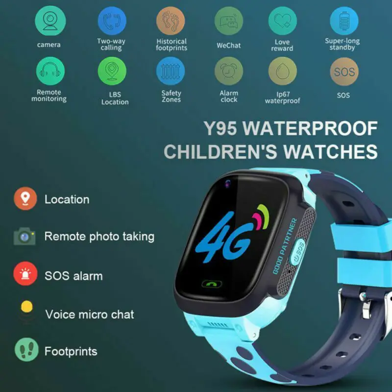 Детские умные смарт-часы Smart Baby Watch Y95 Водонепроницаемые, 4G, Wi-Fi и GPS, с видеозвонком и SIM card