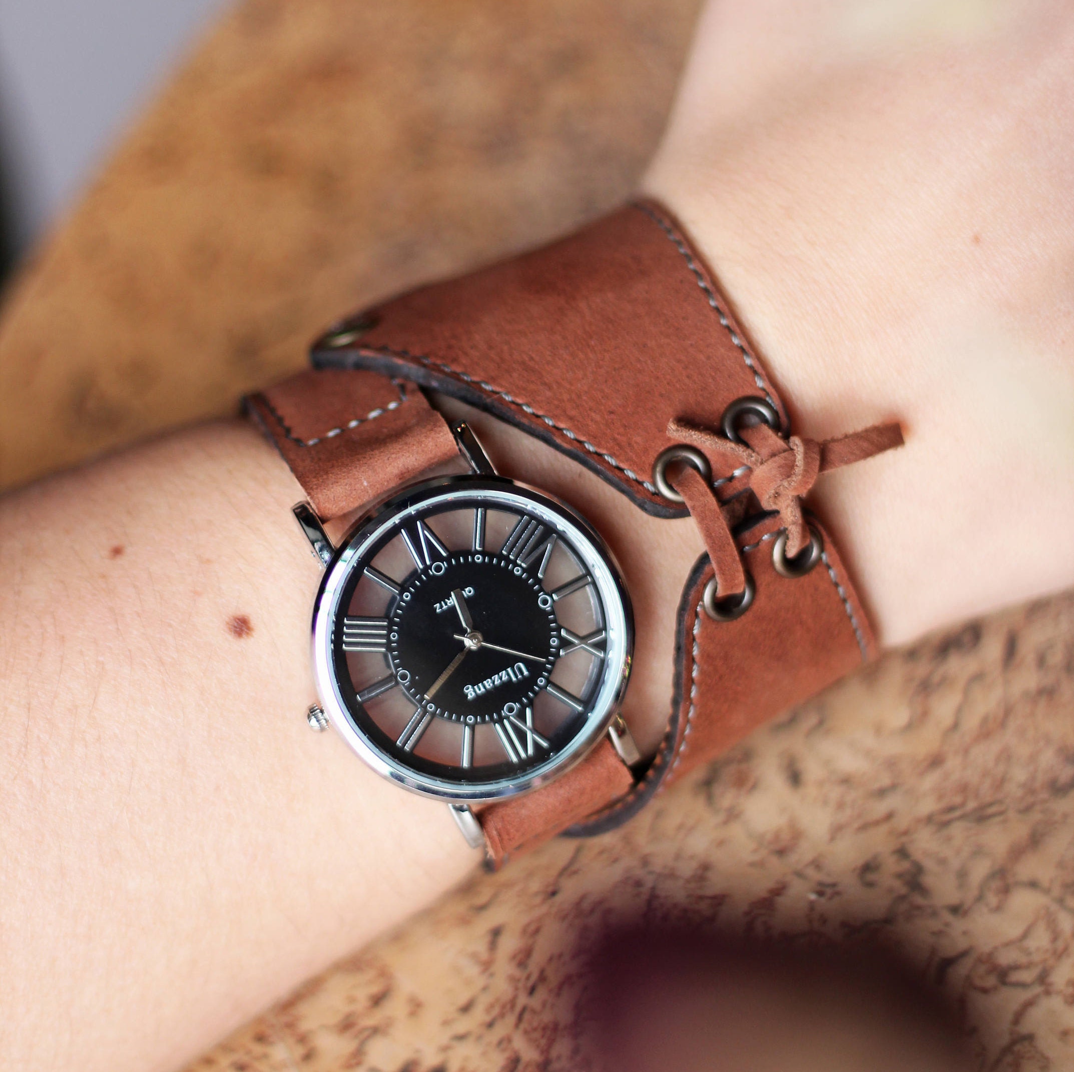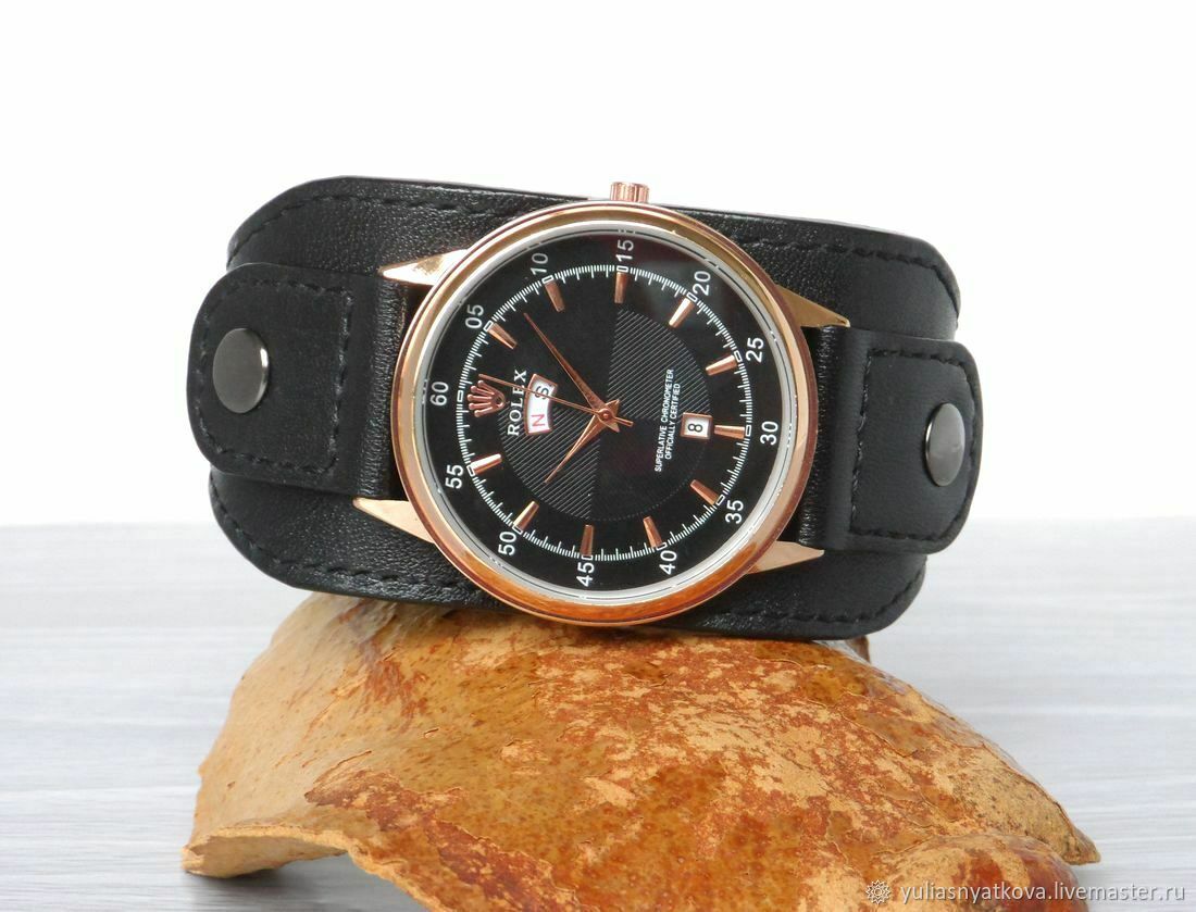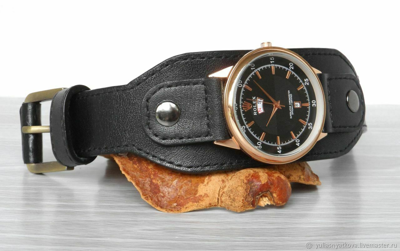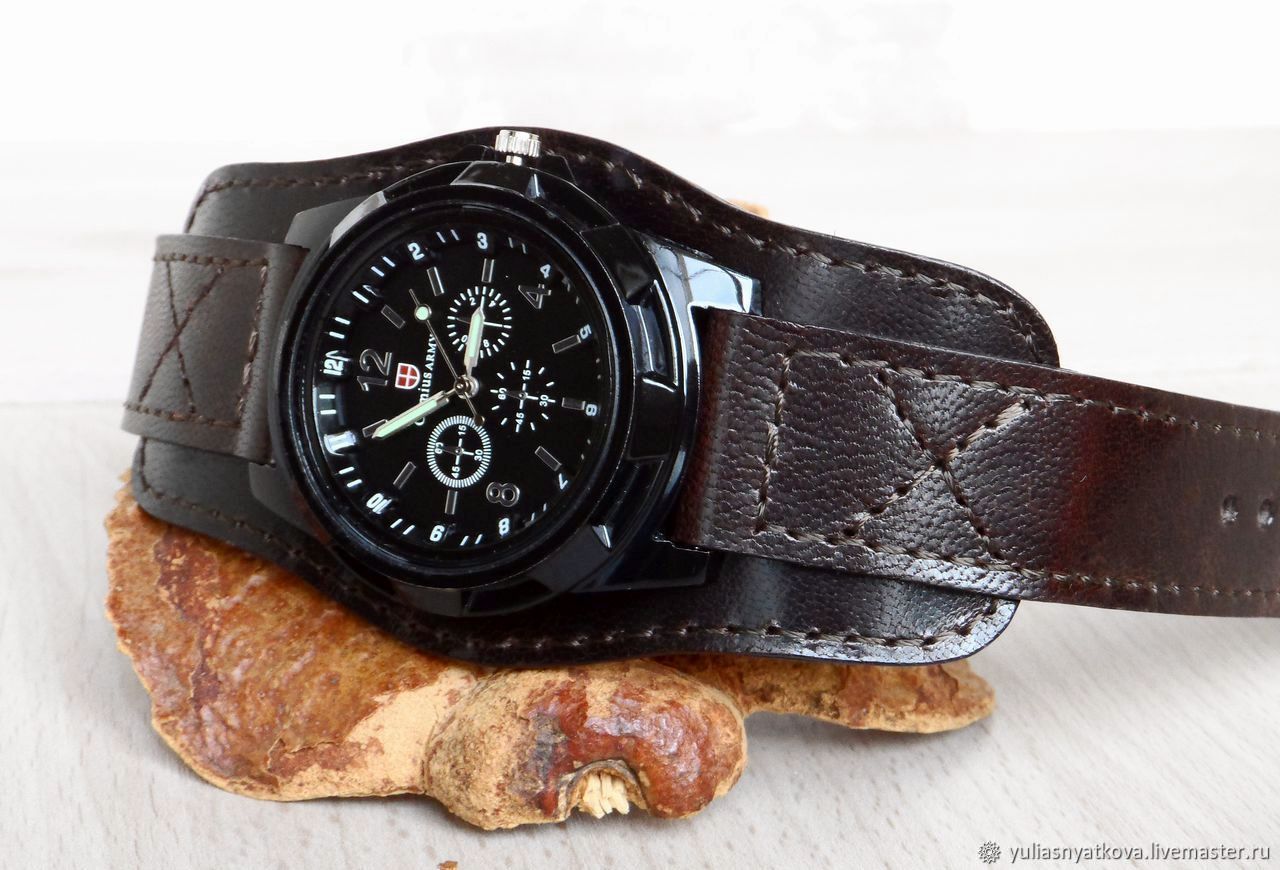 Часы на кожанам браслете 142 фотографий