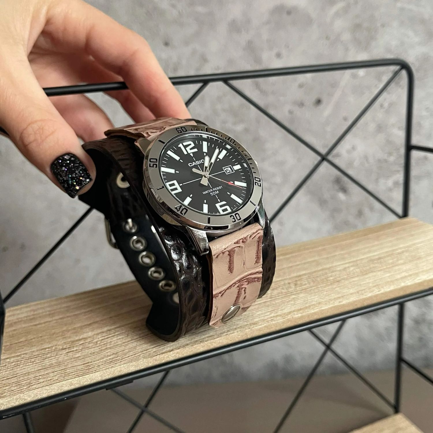 Часы на кожанам браслете