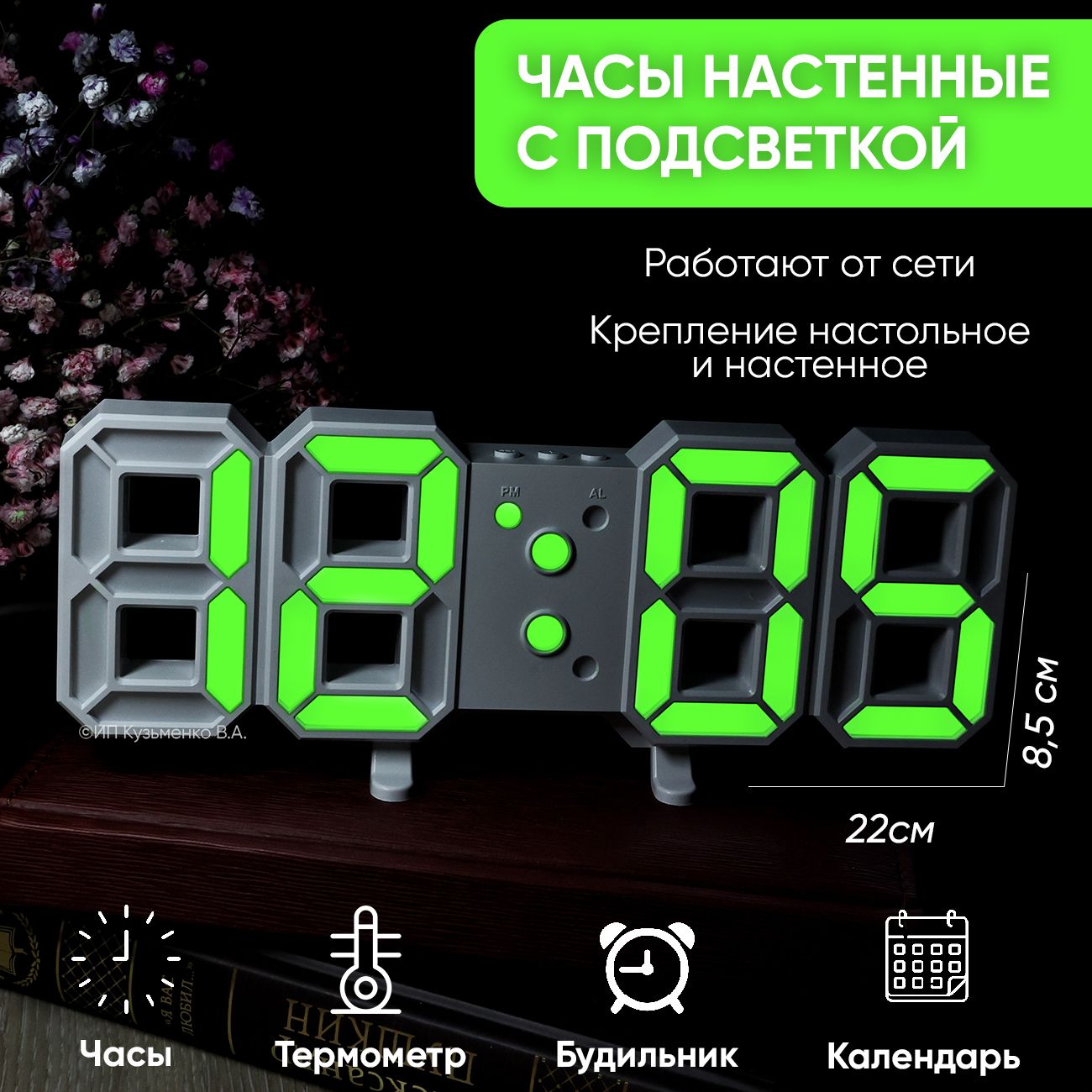 Часы с подсветкой от сети