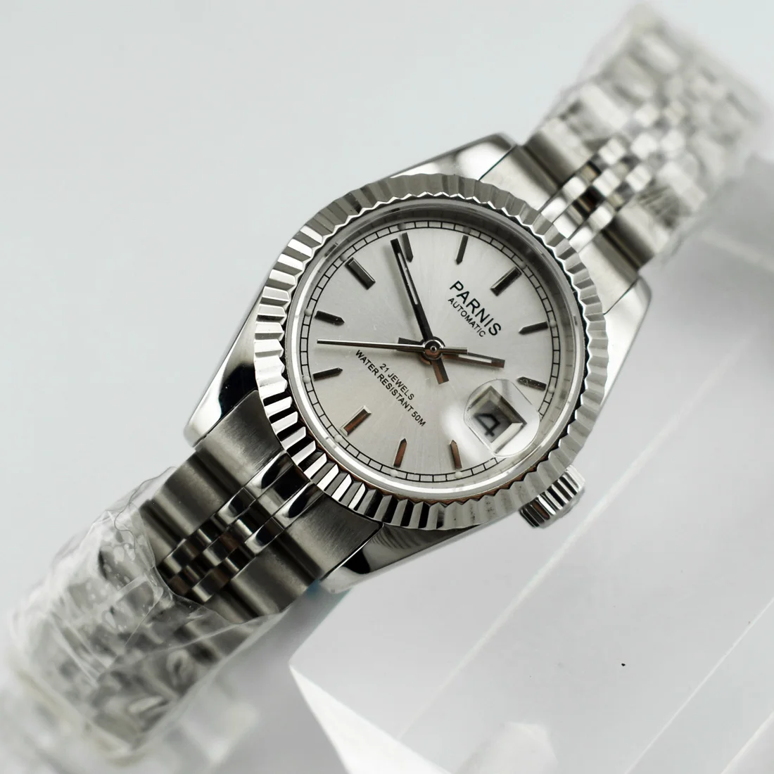 Часы с серебристым циферблатом
