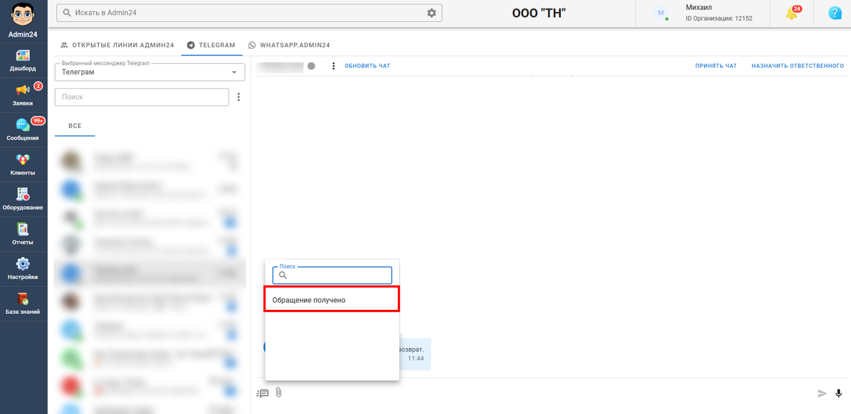 Чат телеграмм на сайте