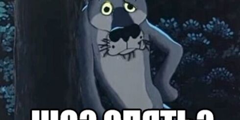 На картинке изображен грустный волк из забавного советского мультика и надпись «Шо, опять?» Мем «Шо, опять?» незаменимая вещь на случай важных переговоров, помогает посмеяться и расслабиться, если эти переговоры вдруг уходят из конструктивного русла .