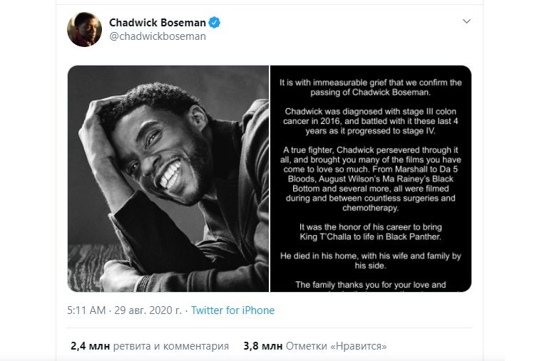 Чедвик Боузман Причина Смерти Дата Смерти Фото