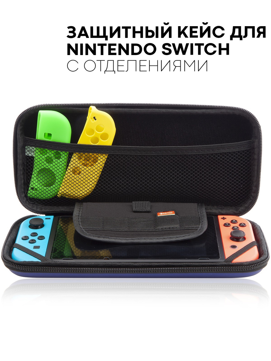 В данный набор входит чехол для переноски Nintendo Switch и защитная пленка для экрана консоли . В чехле предусмотрено место для хранения пяти игровых карт Nintendo Switch и двух ремешков Joy-Con . Чехол также . . .
