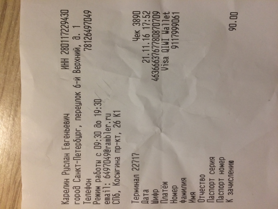 Чек На 3000 Рублей Фото