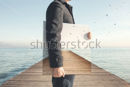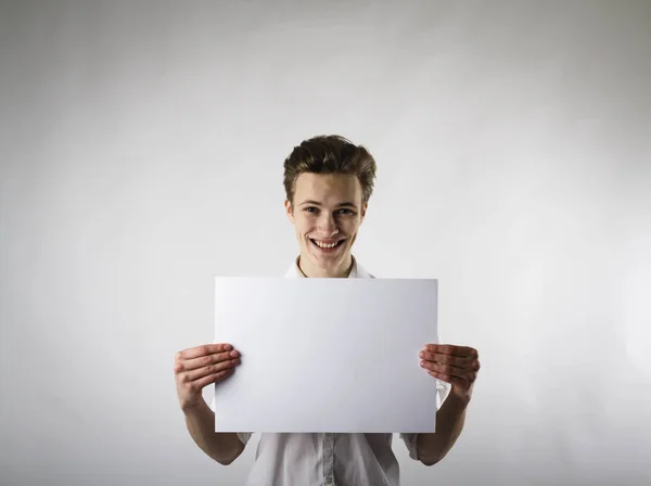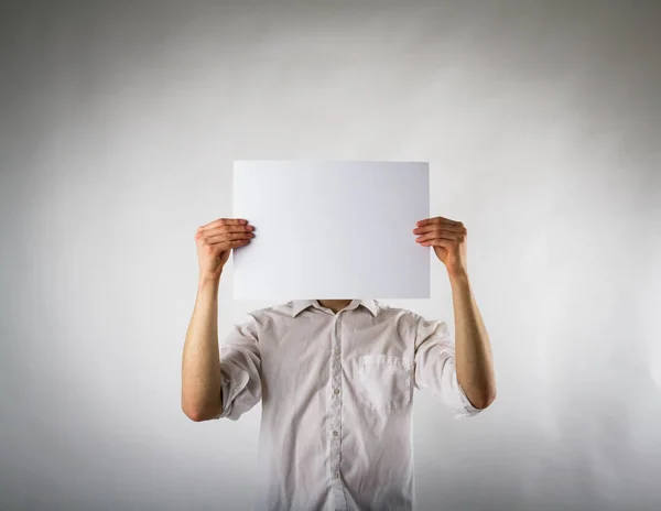 Человек, держащий в руках плакат: стоковая фотография . . .