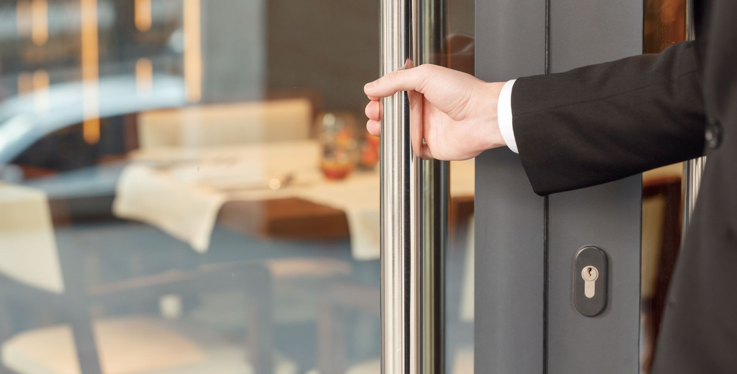 Человек который открывает двери в отеле как