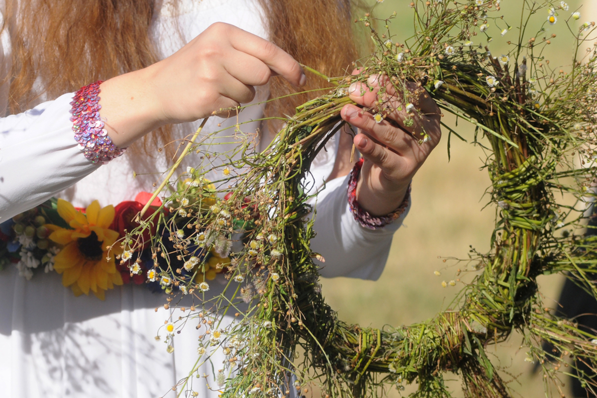 Человек плетет венок