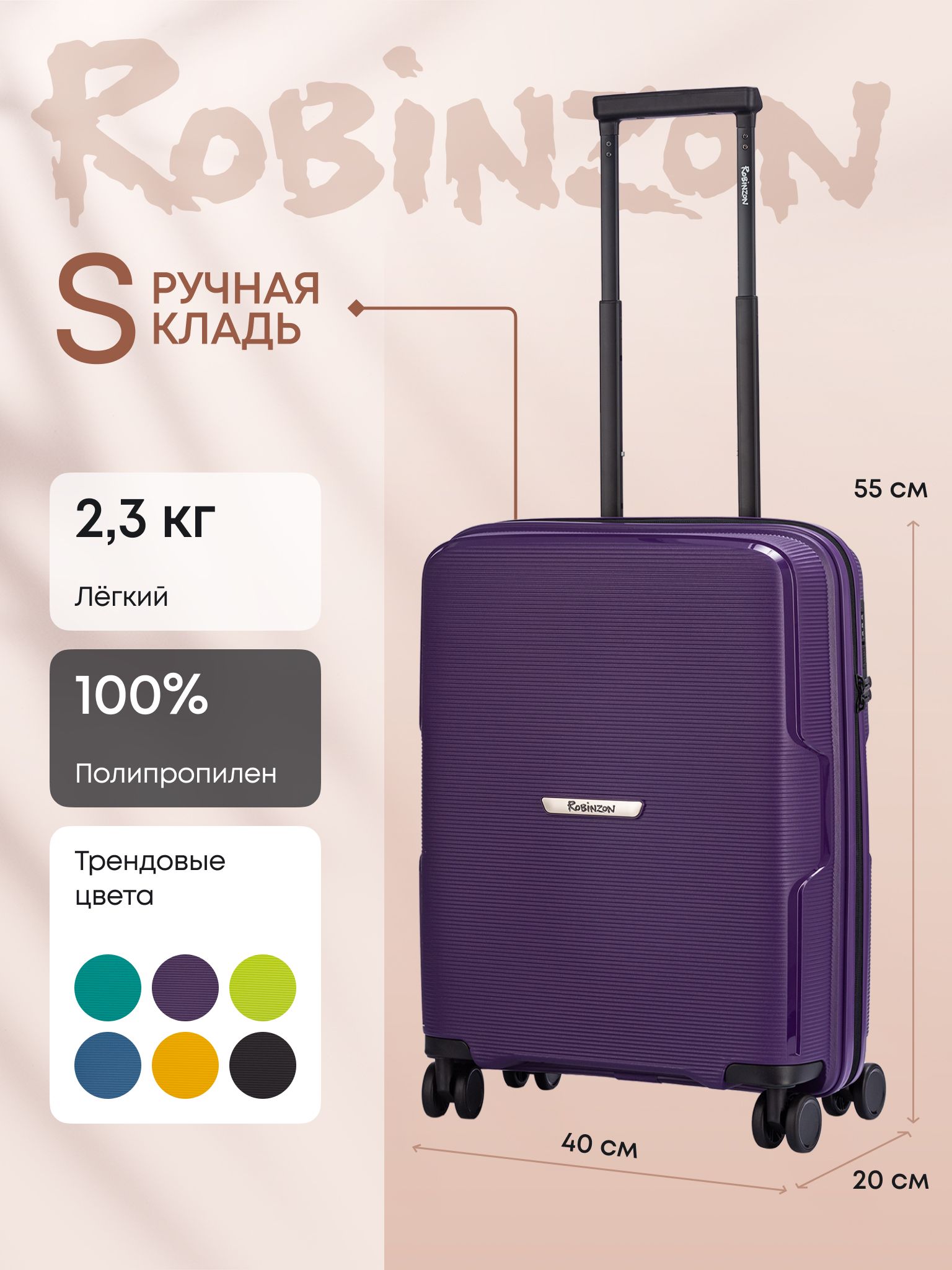 Чемодан robinzon полипропилен 55 см