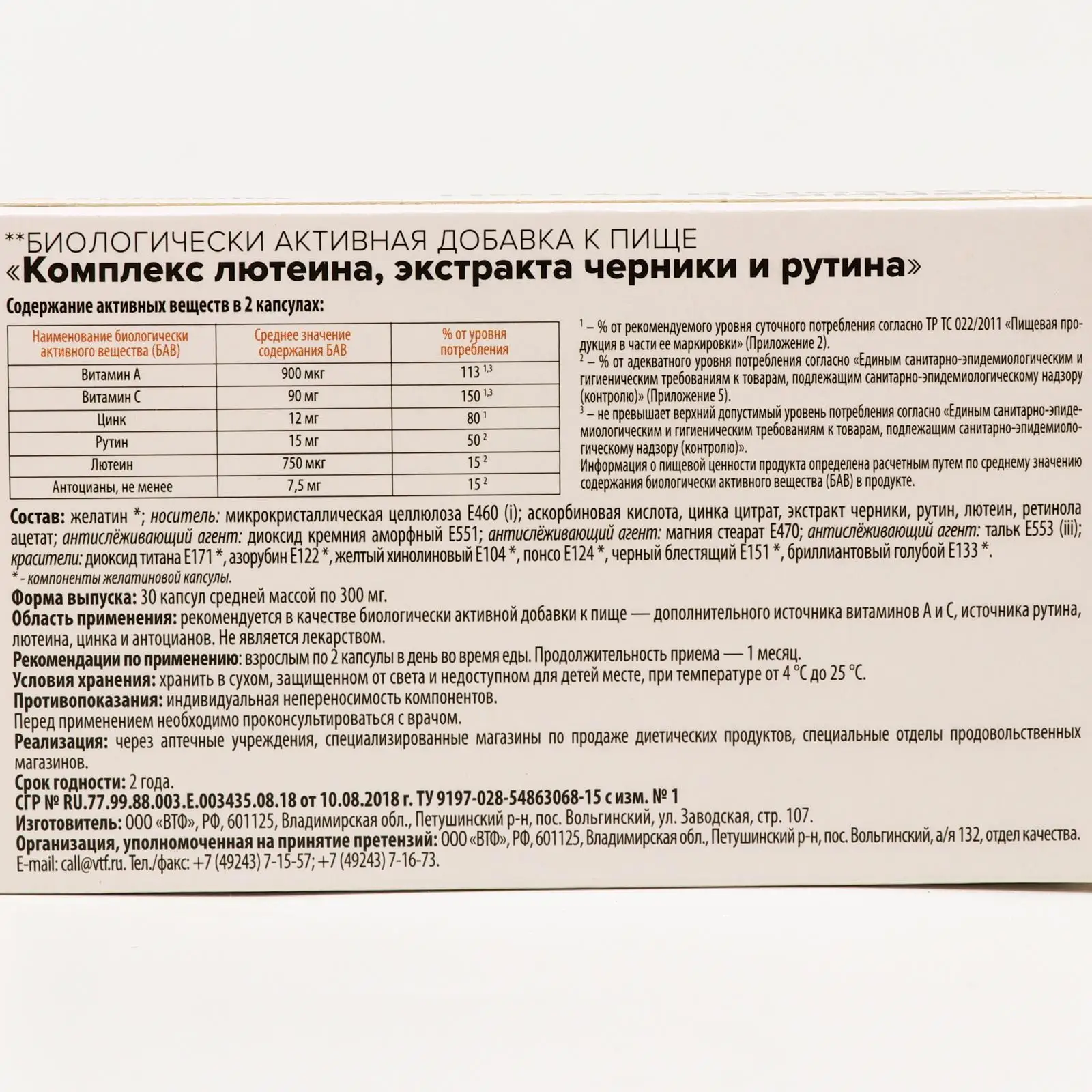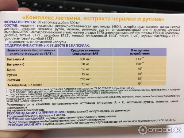 Черника лютеин состав