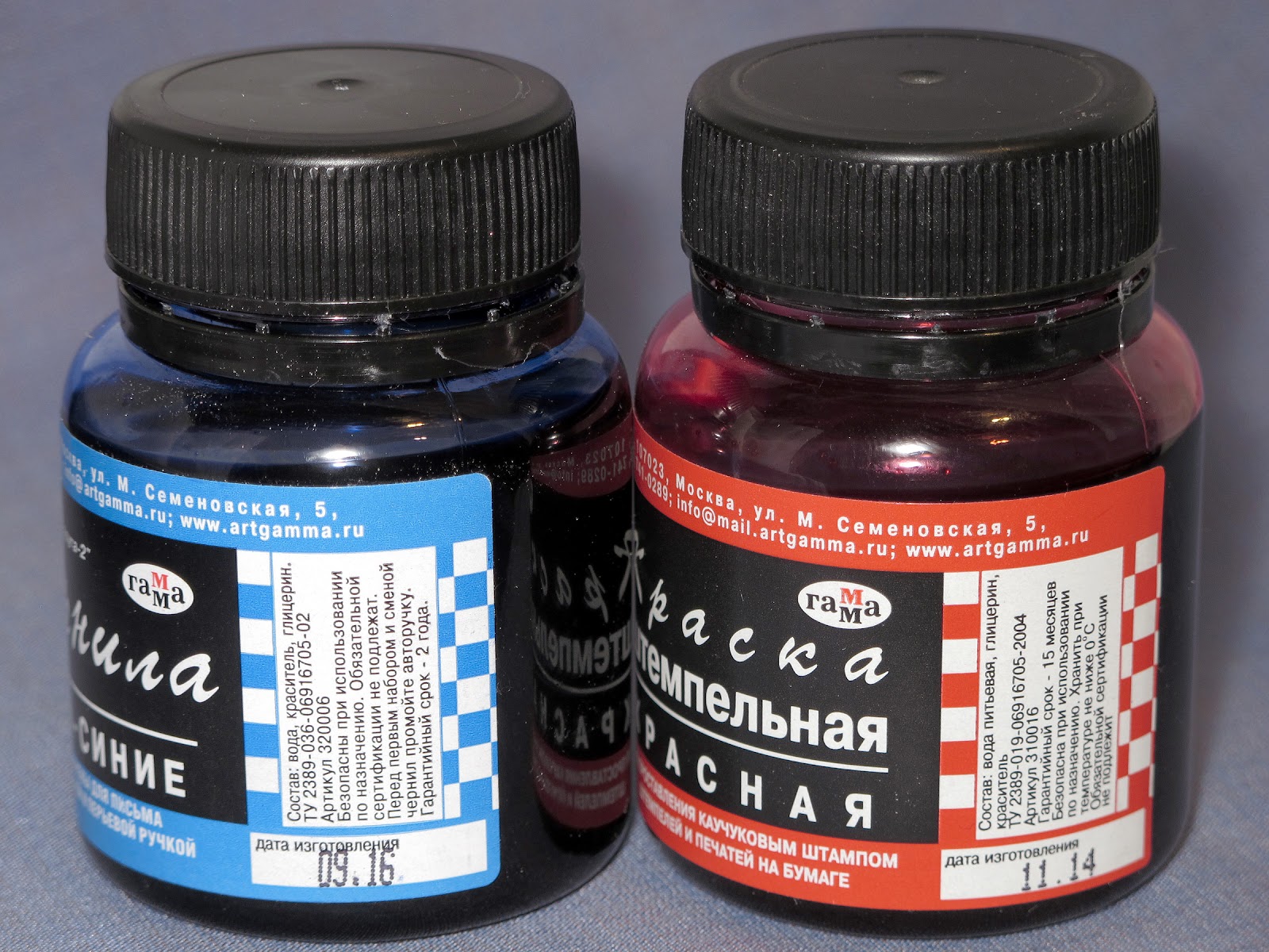 Чернила «Радуга» по основным пропорциям состоят из водного раствора соответствующего кислотного синтетического красителя и глицерина - фиолетовые частично водостойкие Радуга-2 содержат два красителя, синий и фуксию подтипы метиловый фиолетовый (метилвиолет . . .
