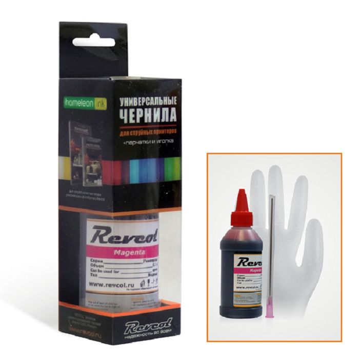 Чернила для принтеров Brother . Чернила для cтруйных принтеров Epson . Чернила для плоттеров Epson . Чернила для HP . Canon . . . . Чернила Revcol №28-136, 177, hameleon H801/H280, Magenta, Dye, 100 мл .