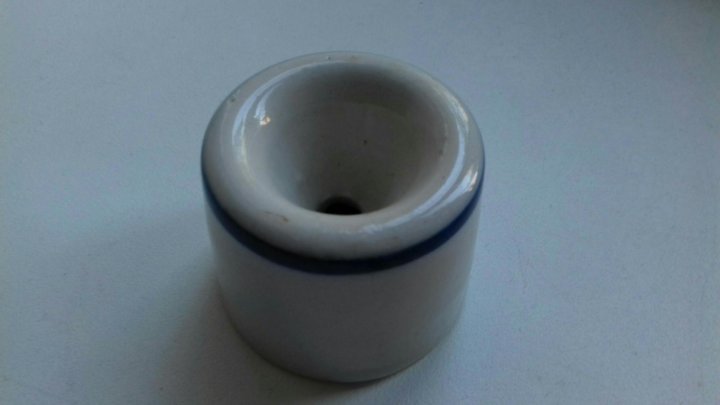 А это — советская школьная чернильница «непроливайка» . В школах, до появления шариковых ручек, писали чернилами и перьевыми ручками . Для чернил и служила вот такая, как на картине . . .