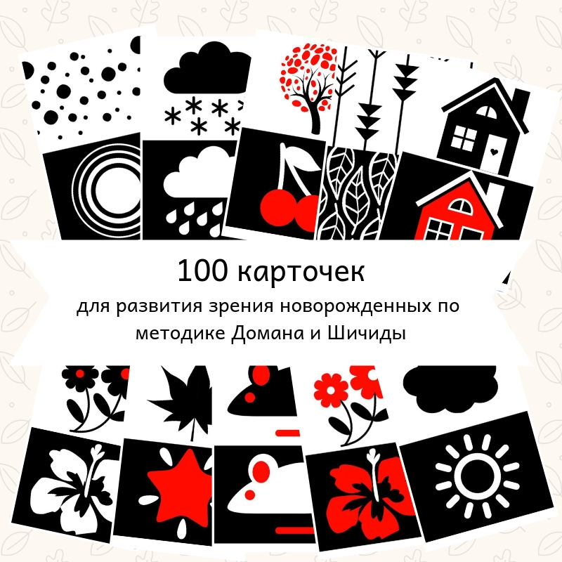 Черно-белые карточки Домана (16*16 см) руб . Карточки предназначены для стимуляции зрительного нерва новорожденных детей . Можно использовать с самого рождения и до 3-6 месяцев . Контрастная комбинация черного и белого цветов привлекает внимание младенца и заставляет его . . .