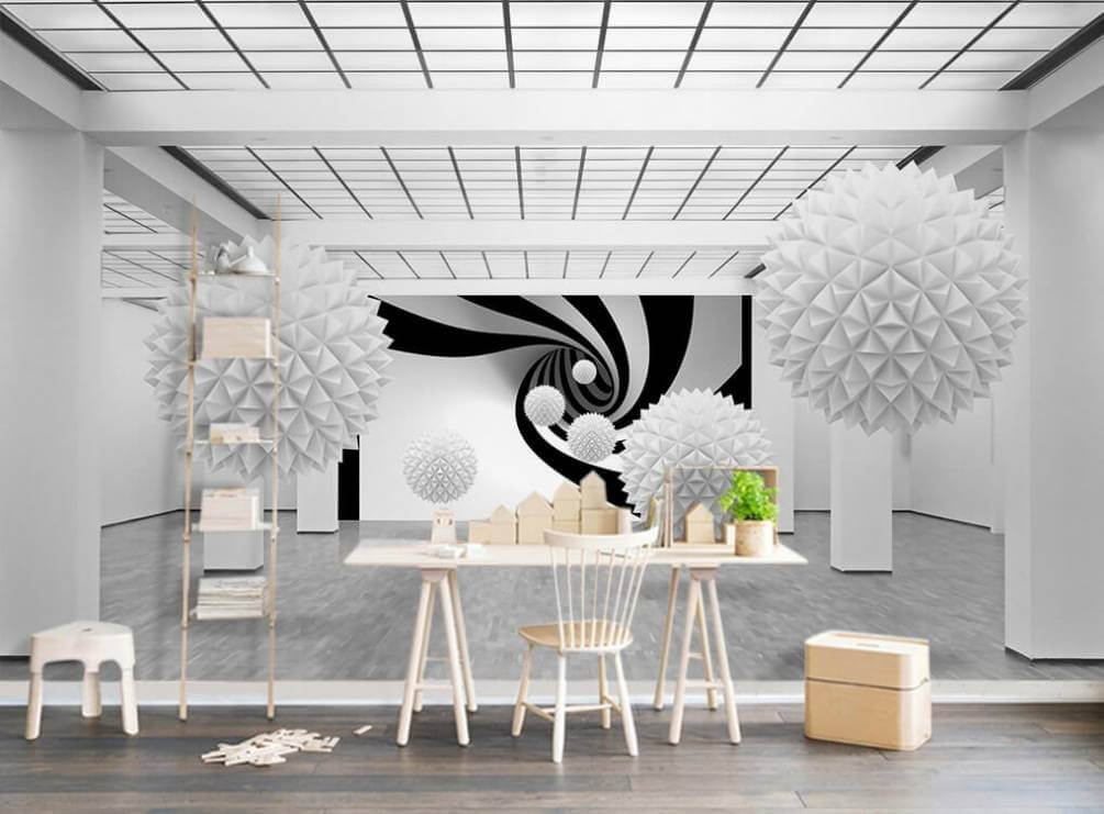 Декорирование пола черно-белым дизайном . Как черный, так и белый относятся к цветам марким, особенно, если речь идет о ковровом покрытии пола .