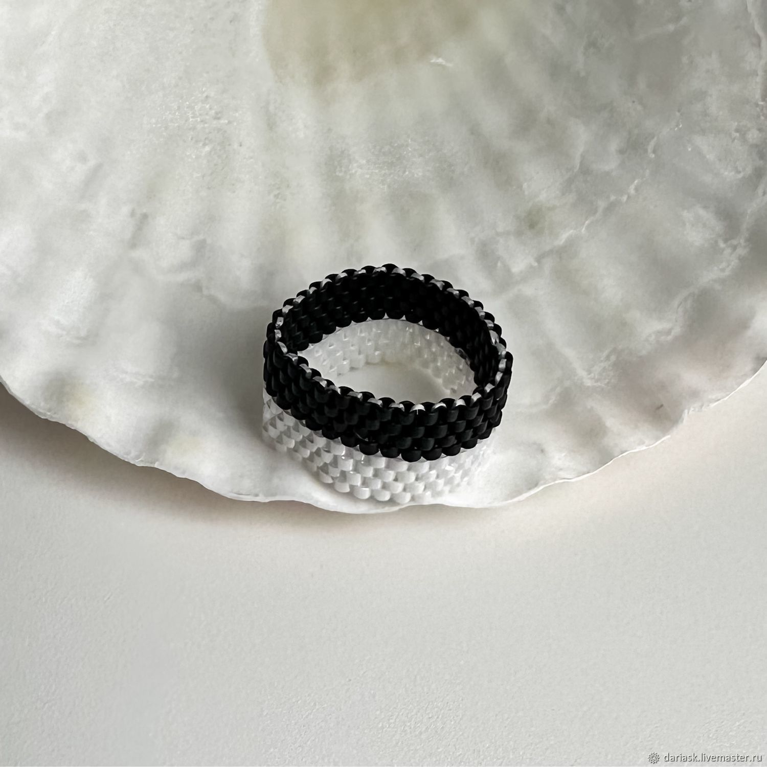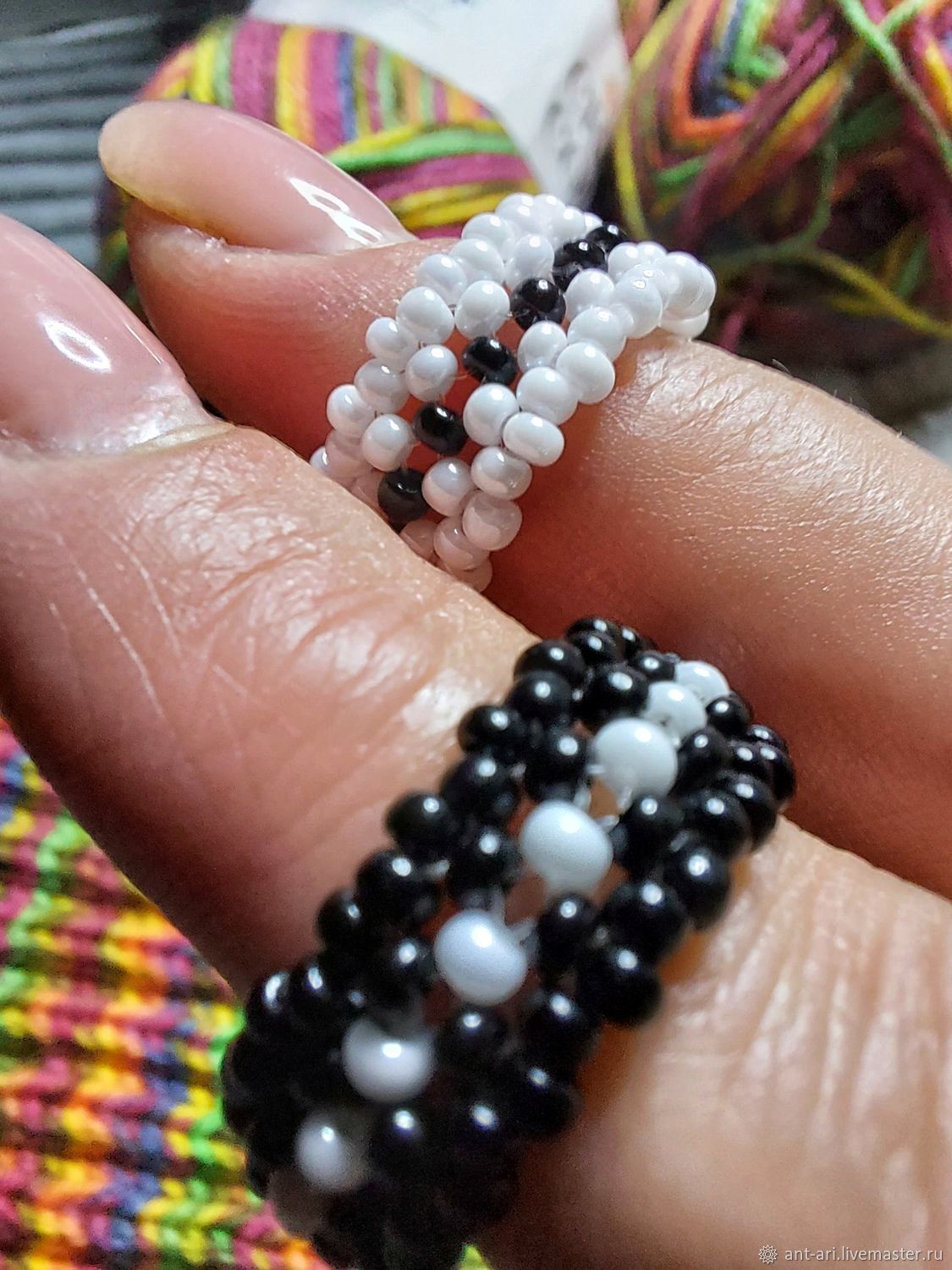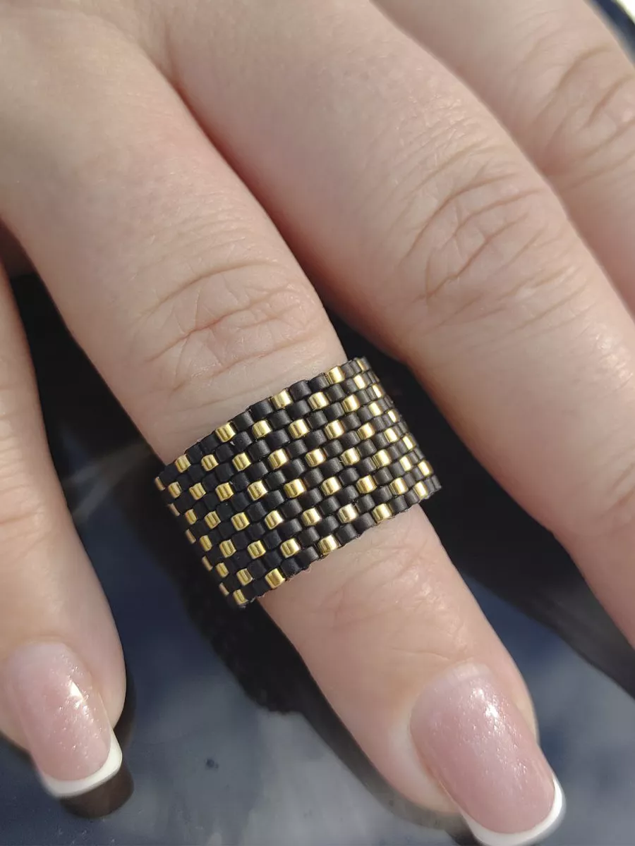 Черно белые кольца из бисера 148 фото