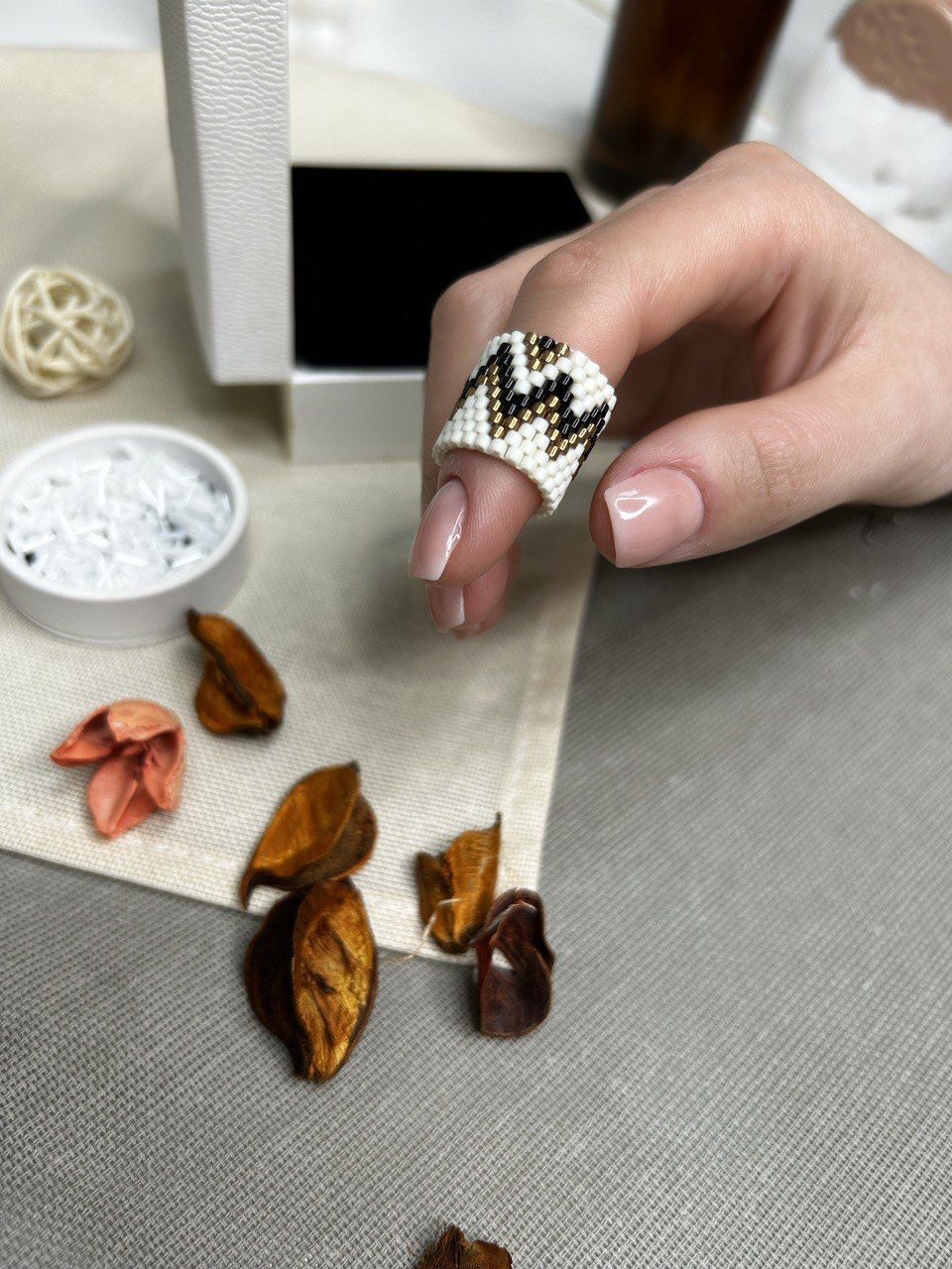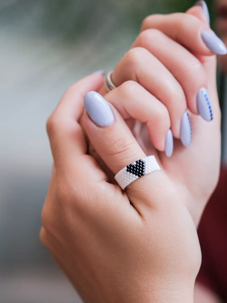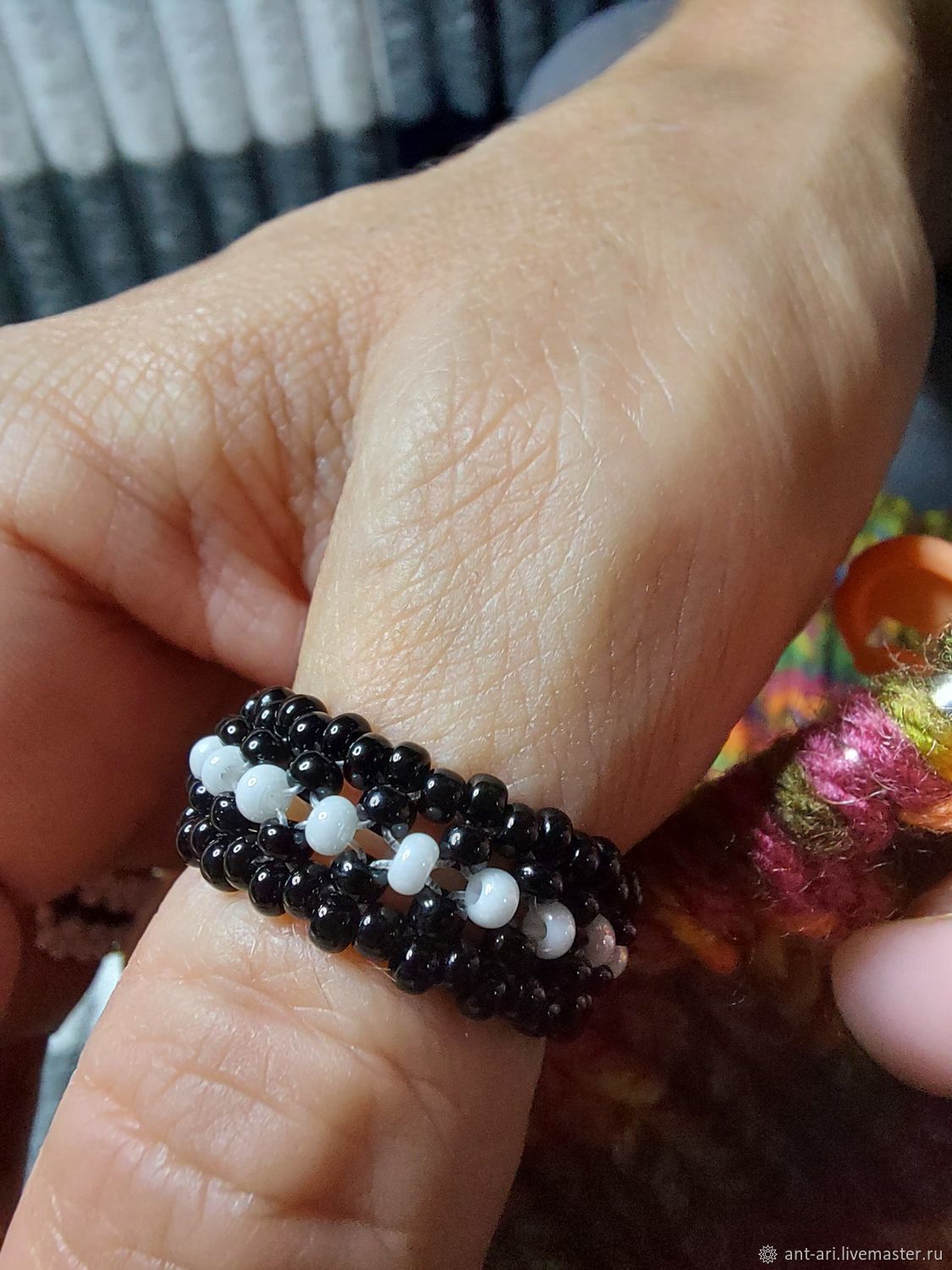 Черно белые кольца из бисера 148 фото