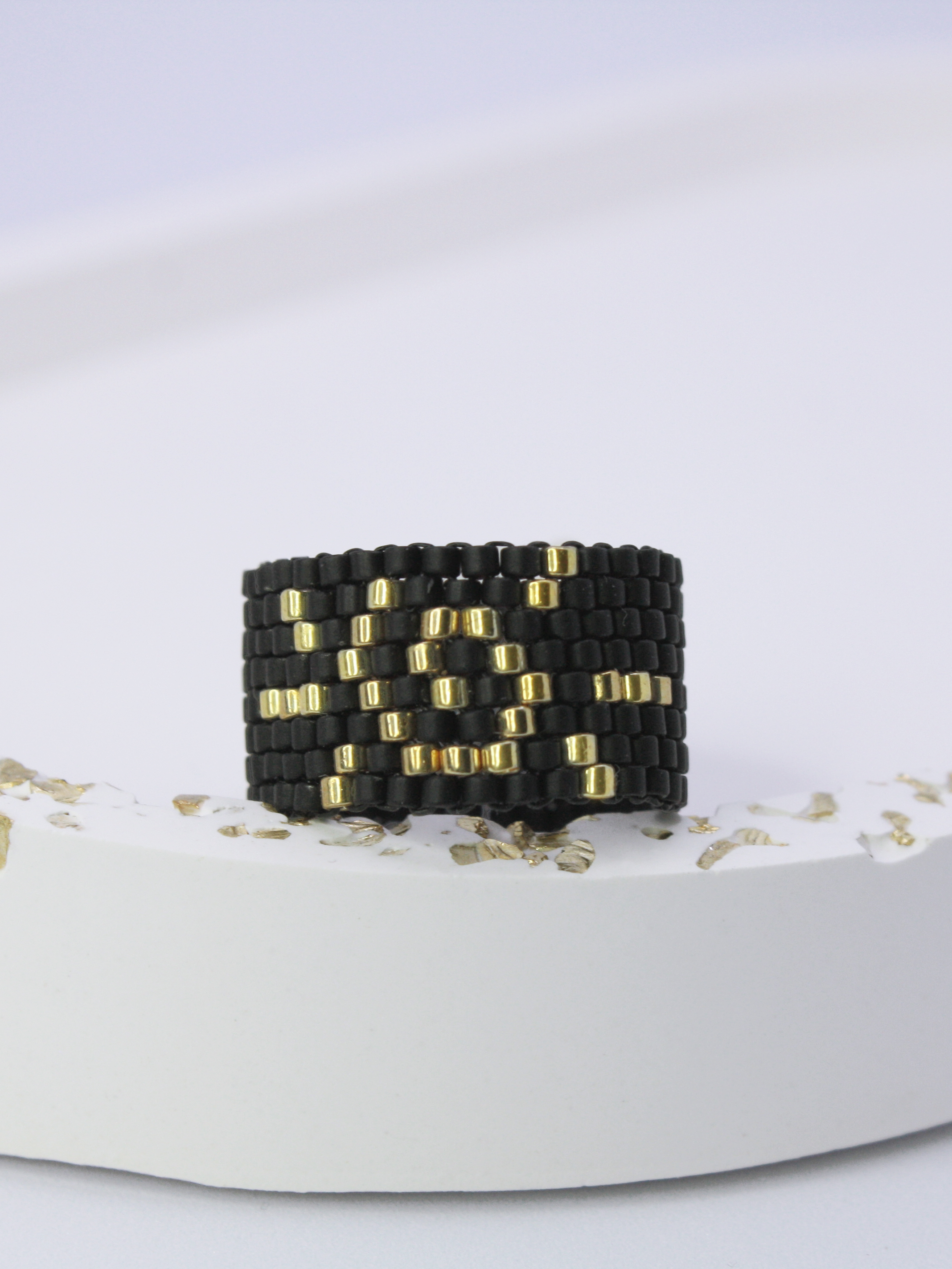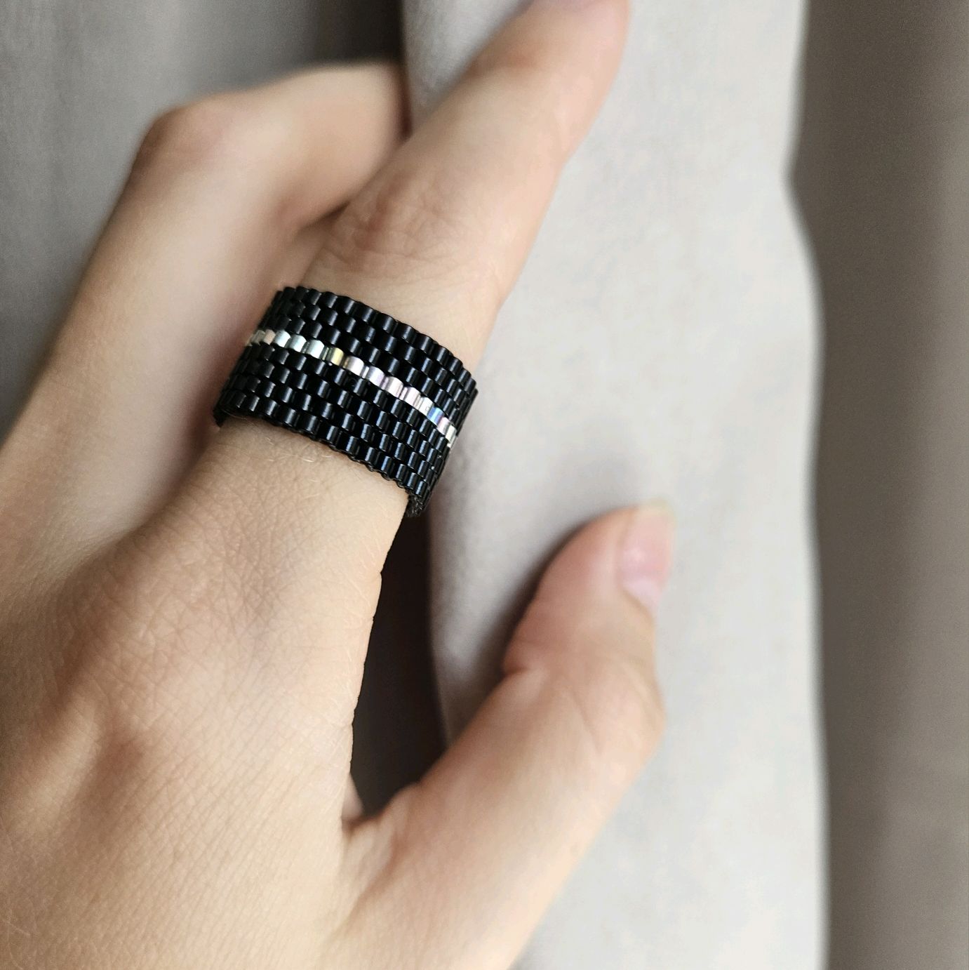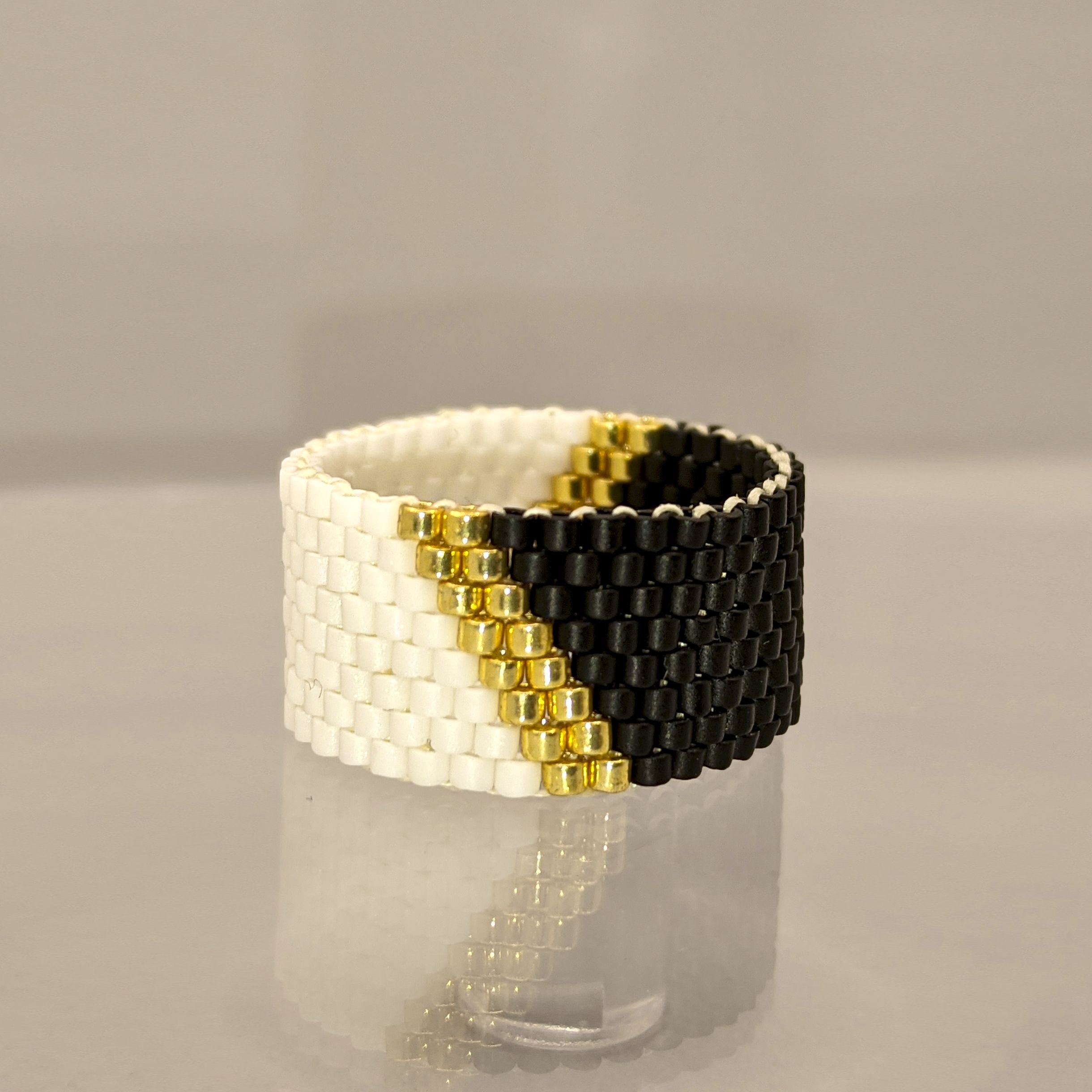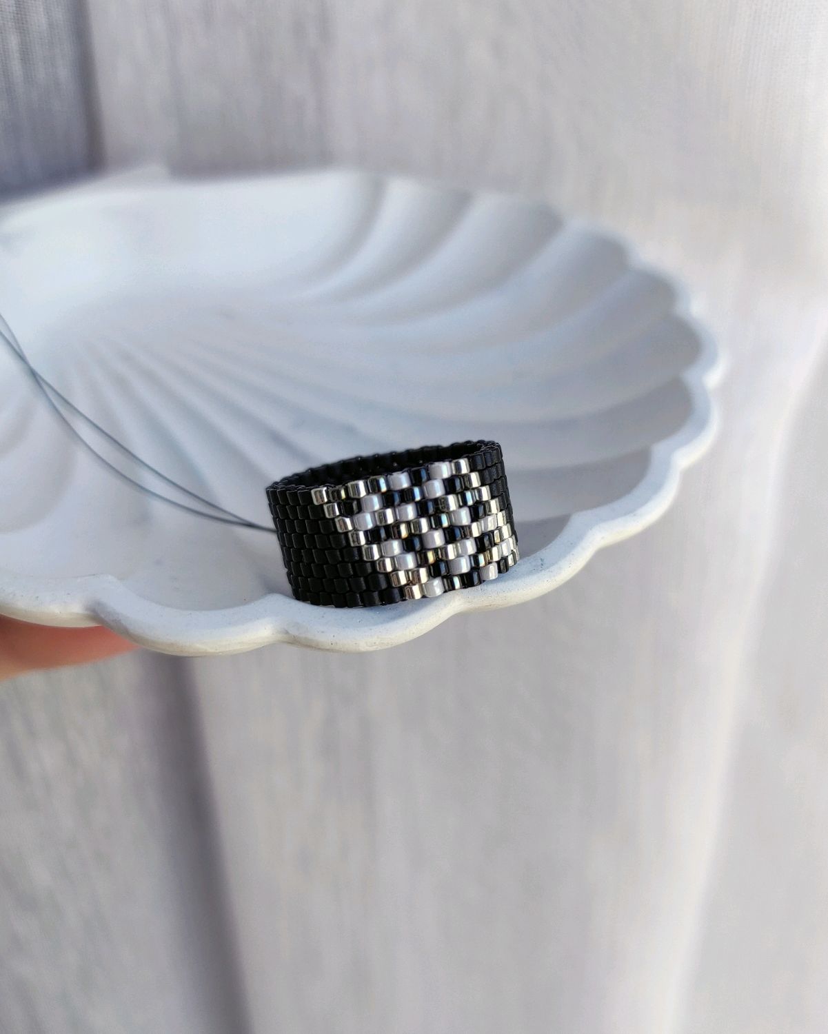Черно белые кольца из бисера