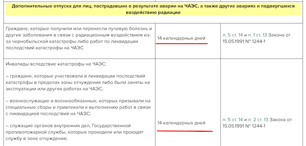 Чернобыльские отпускные
