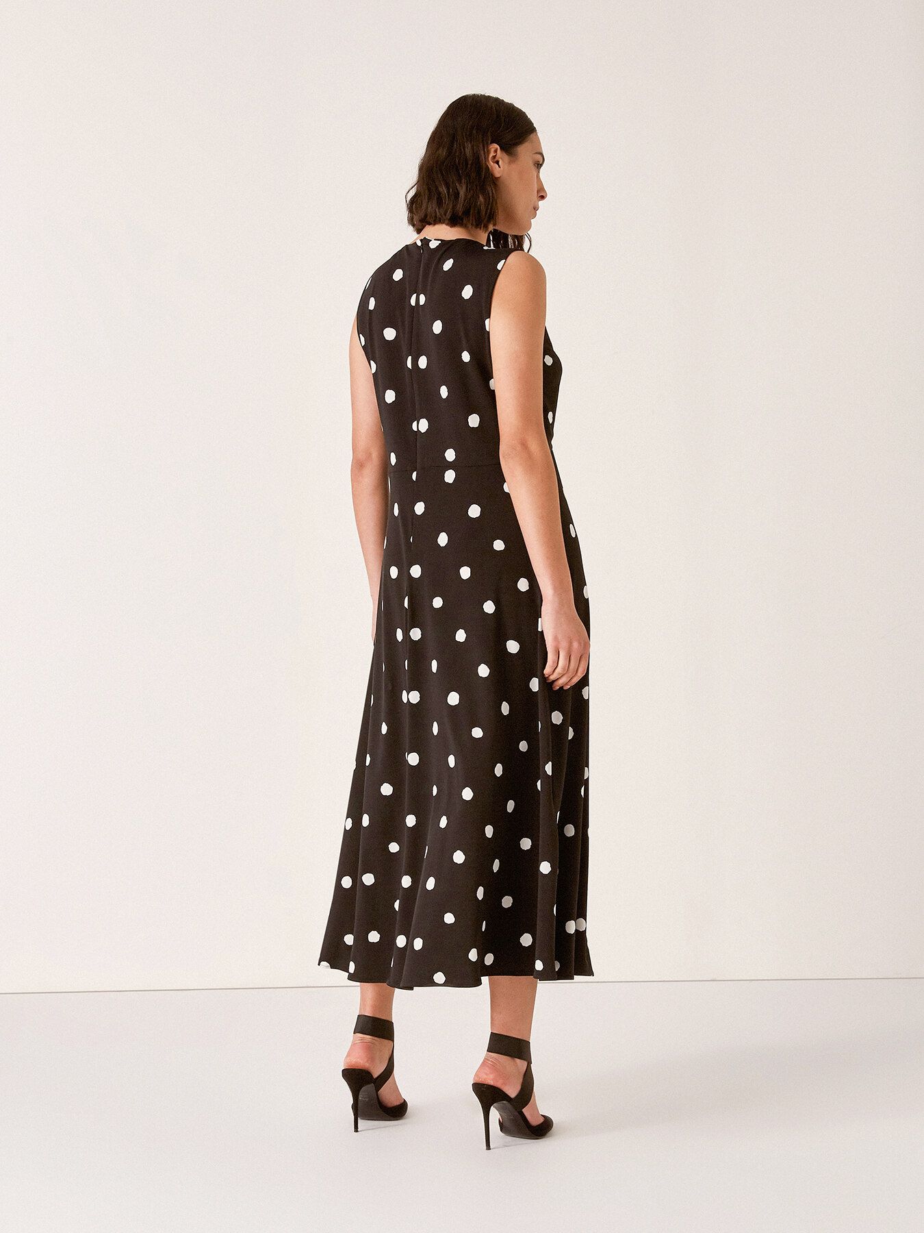 Черное пляжное платье в белый горошек с V-образны…