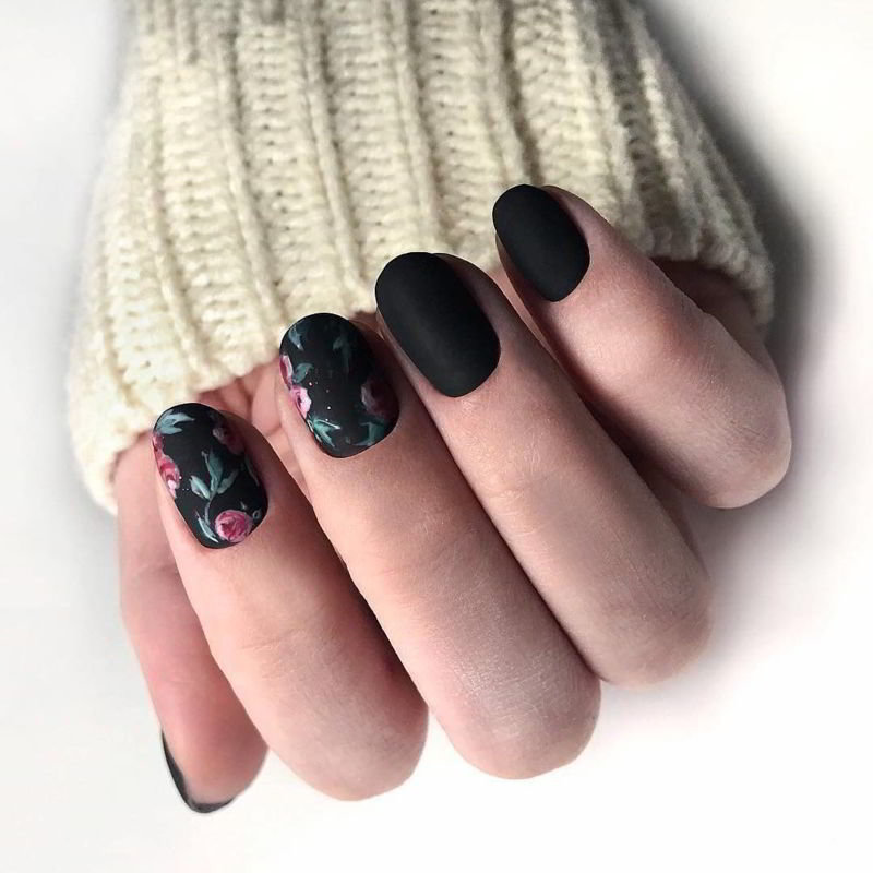 Черный матовый маникюр (120 фото)