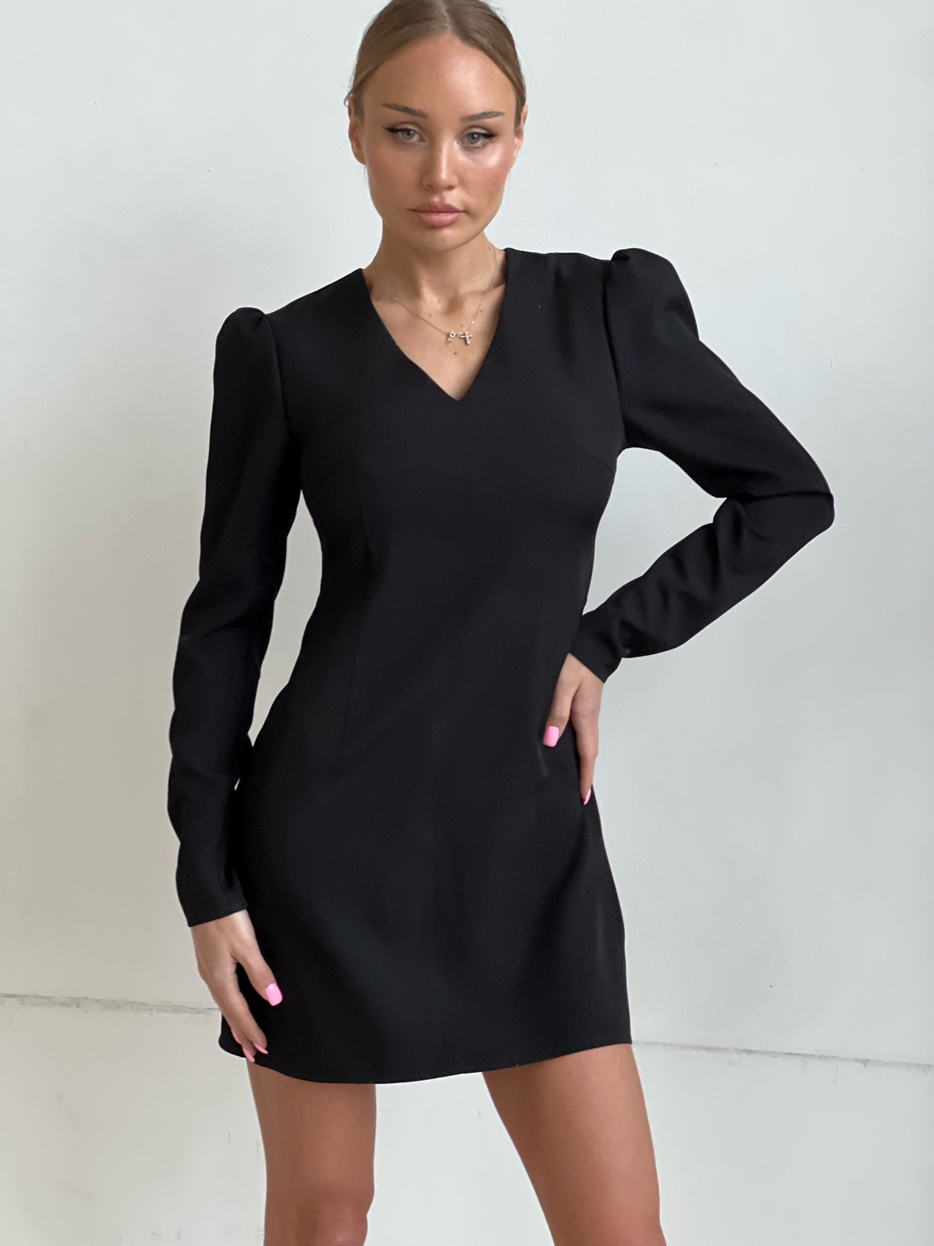 Черные Платья С Рукавом Фото 85 фотографий
