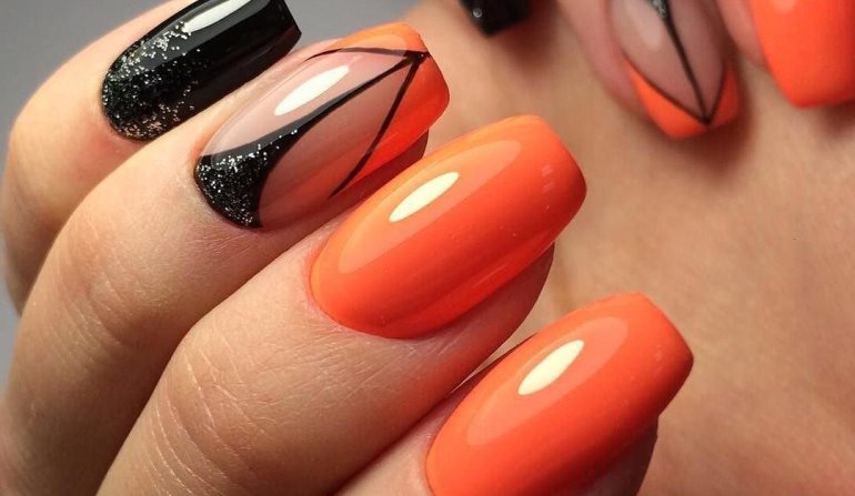 Маникюр Черный С Оранжевым Фото 146 фото