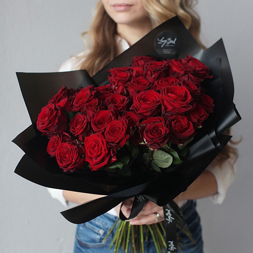 Черный букет красные розы 139 фото