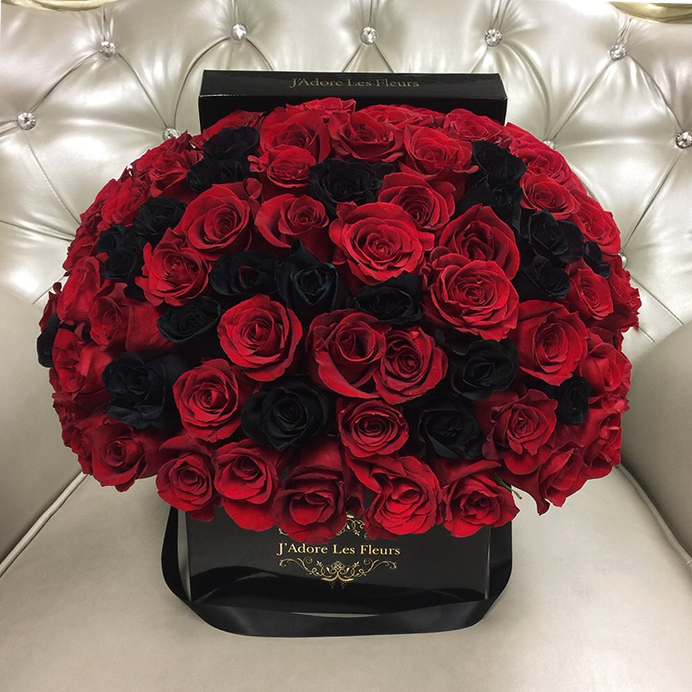 Черный букет красные розы