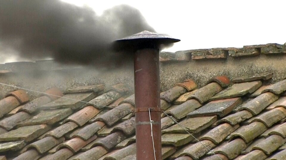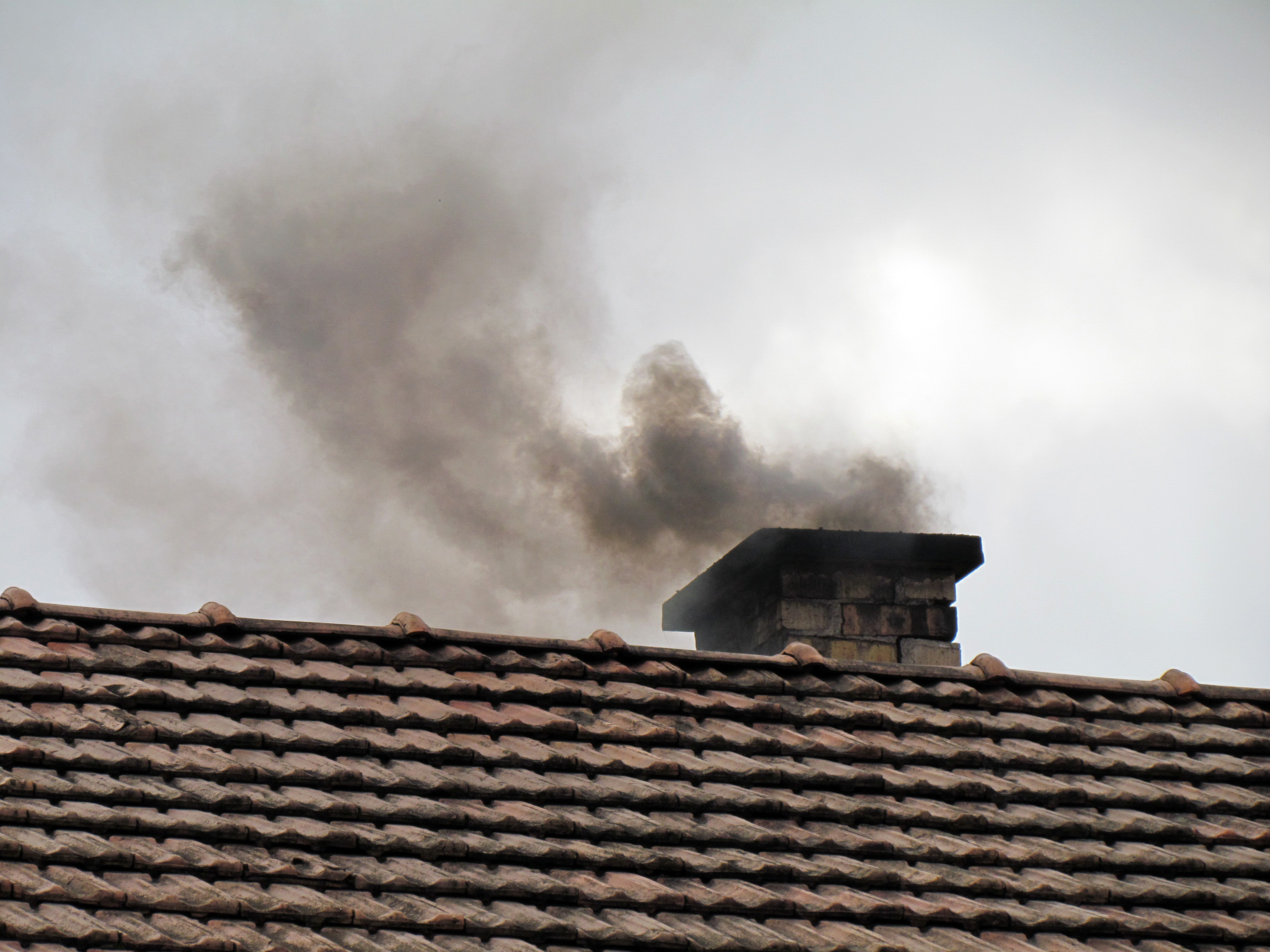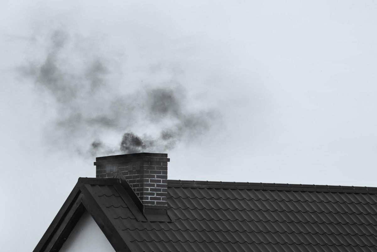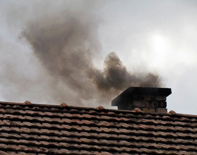 Черный дым из трубы печи