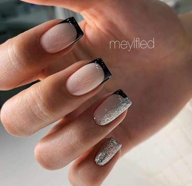 Черный френч на квадратных 2025 144 фото