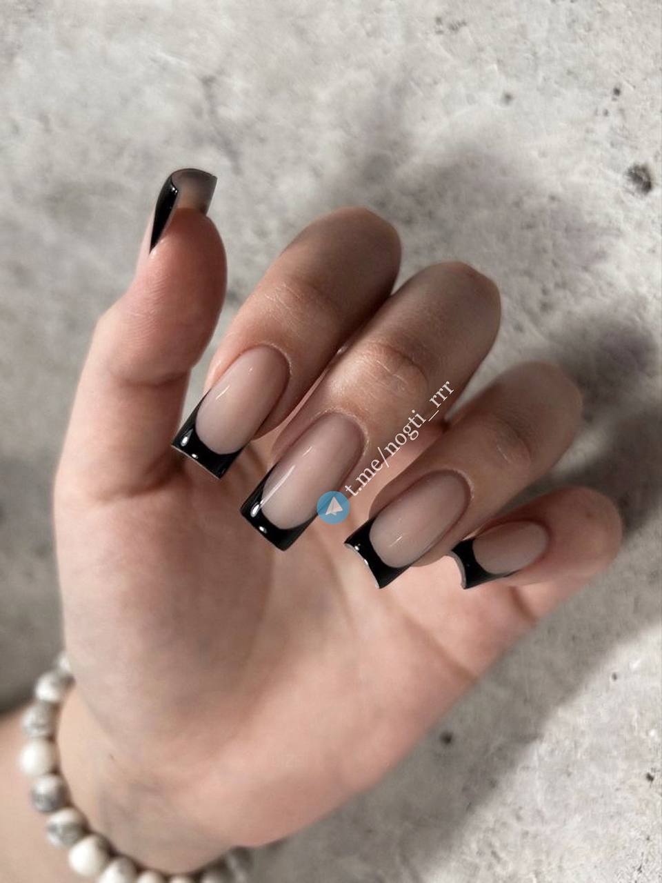 Черный френч на квадратных 2025