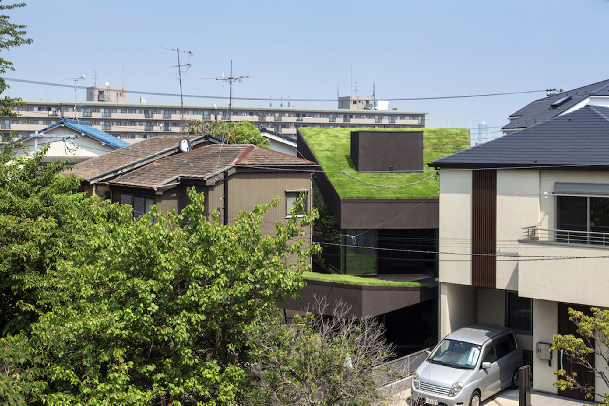 Черный с зеленой крышей
