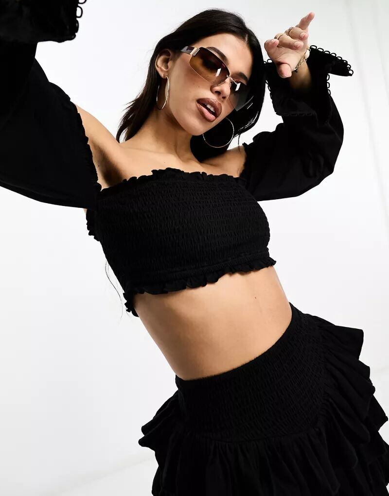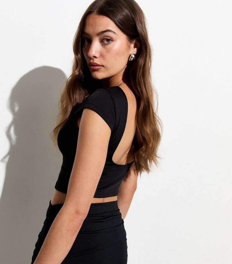 Черный укороченный топ 79 фото