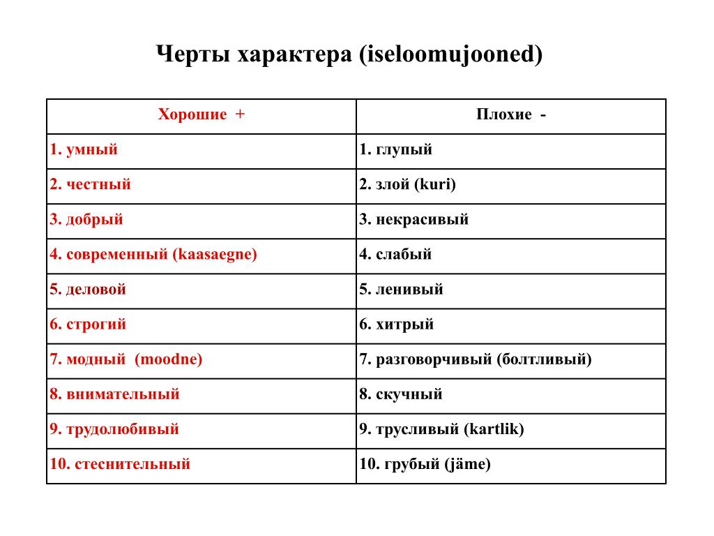 Черта характера на букву а