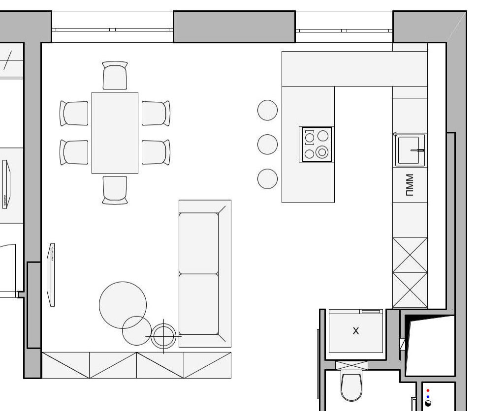 Чертежи кухонь гостиных