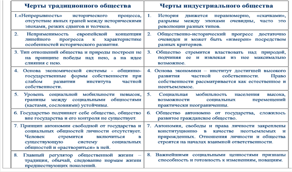 Черты традиционного общества и нового времени
