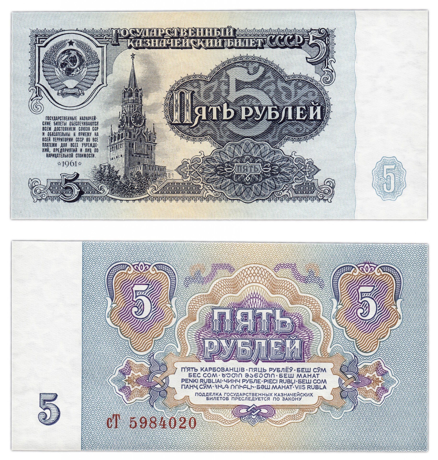 Государственные казначейские билеты обеспечиваются всем достоянием Союза СССР и обязательны к приему на всей территории СССР во все платежи во всех учреждениях, предприятий и лиц по нарицательной стоимости .