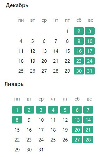 Числа новогодних выходных