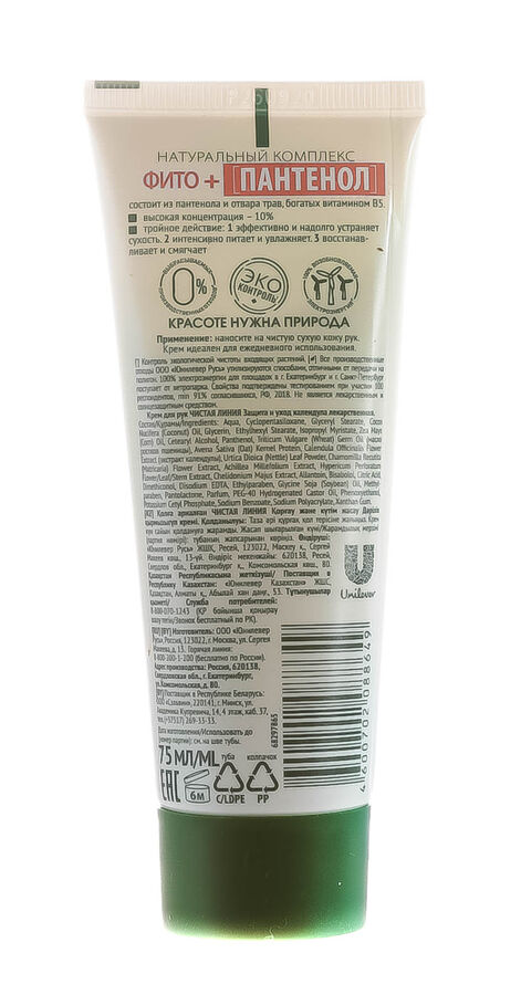 Крем для рук Чистая линия, комплекс фито + пантенол, 75 мл купить по цене от 71,10 руб . . Бесплатная и быстрая доставка по всей России и Перми в день покупки .