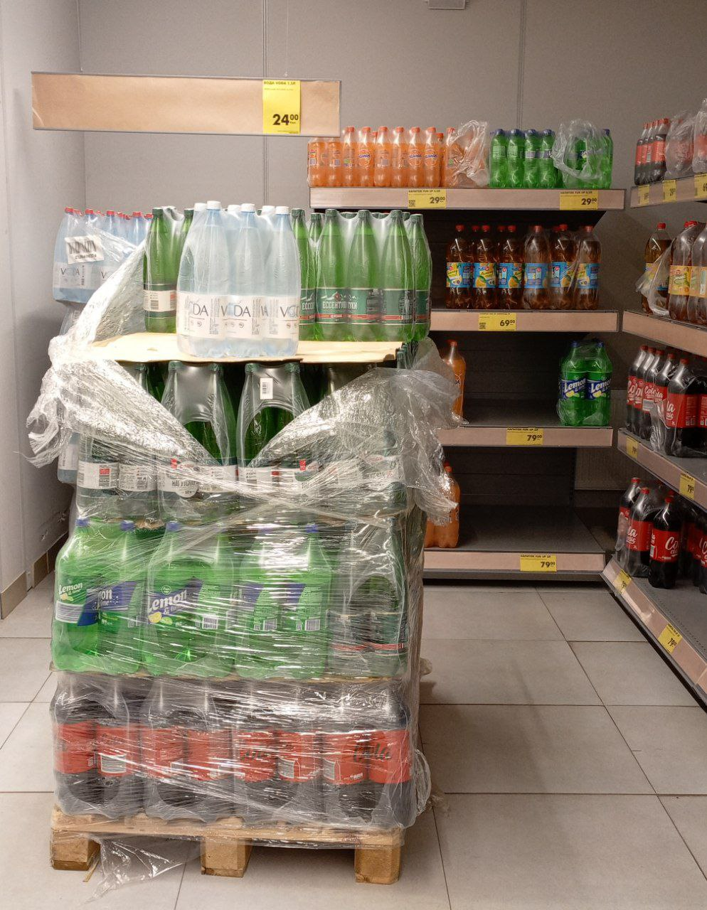 Когда я закончила, мне выкатили ещё один поддон с напитками, в которых по шесть бутылок в упаковке, каждая бутылка объёмом от 1,5 до 2 литров. 😳