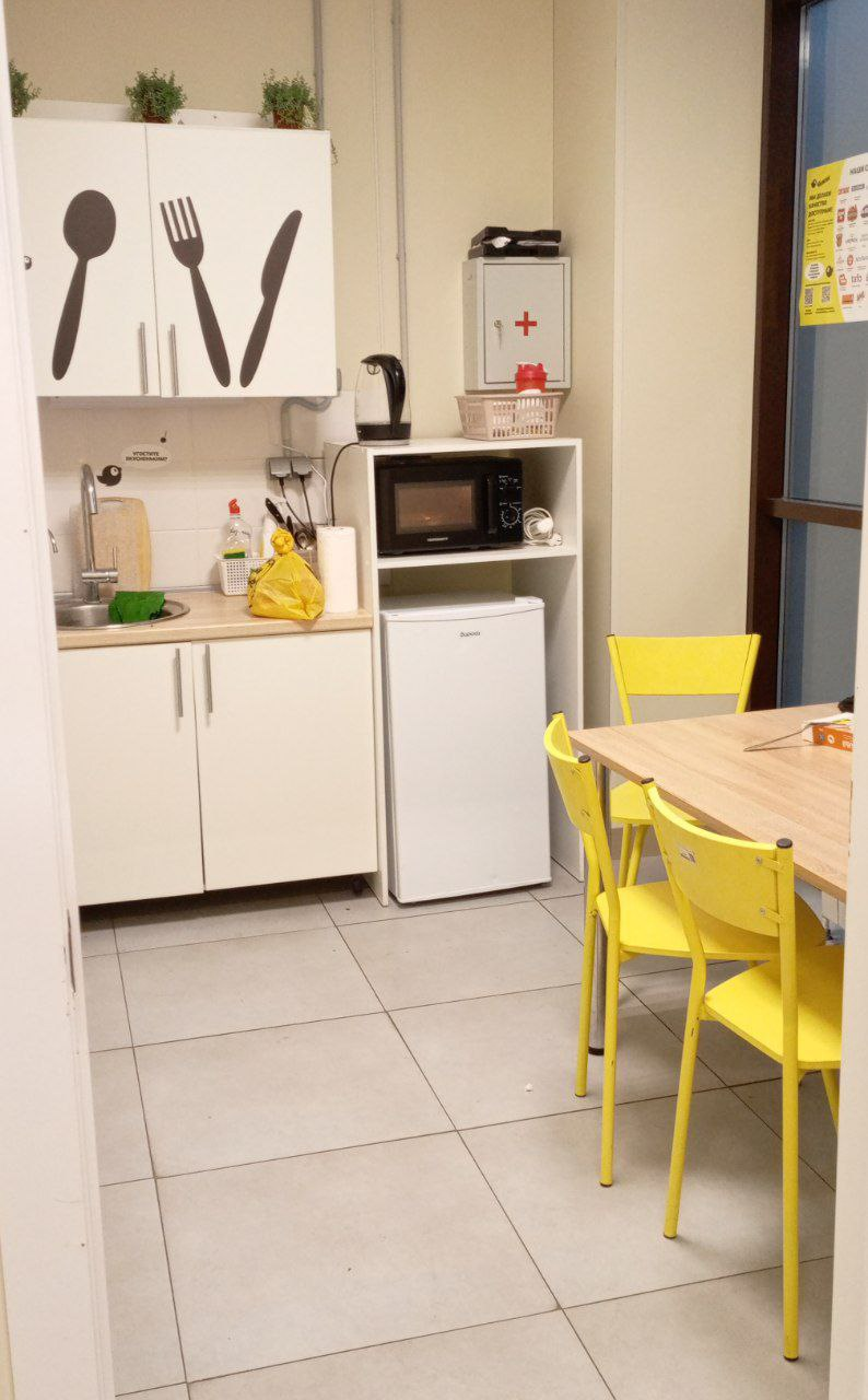 За смену надо разобрать около 2-3 палета с товарами. Хорошо когда приходят такие же самозанятые и вы эту работу делаете вместе. В этот день нас было трое, другие женщины - самозанятые пришли к 12 часам и помогли справиться с заданием. В обеденный перерыв я пошла покушать и отдохнуть в уютной маленькой комнате - столовой.